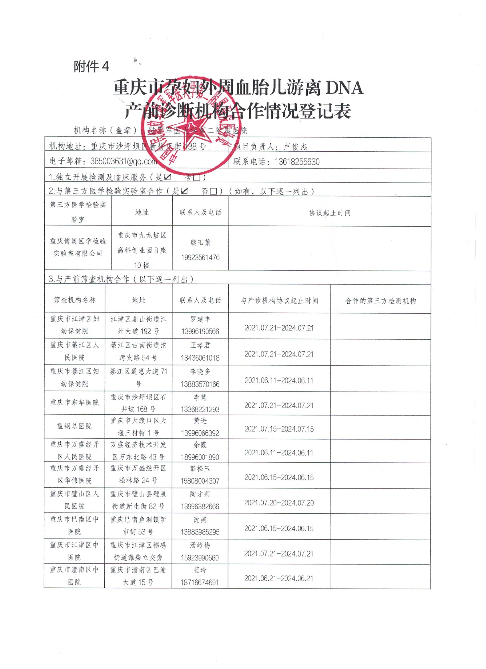陆军军医大学新桥医院与产前筛查机构合作单位名单公示