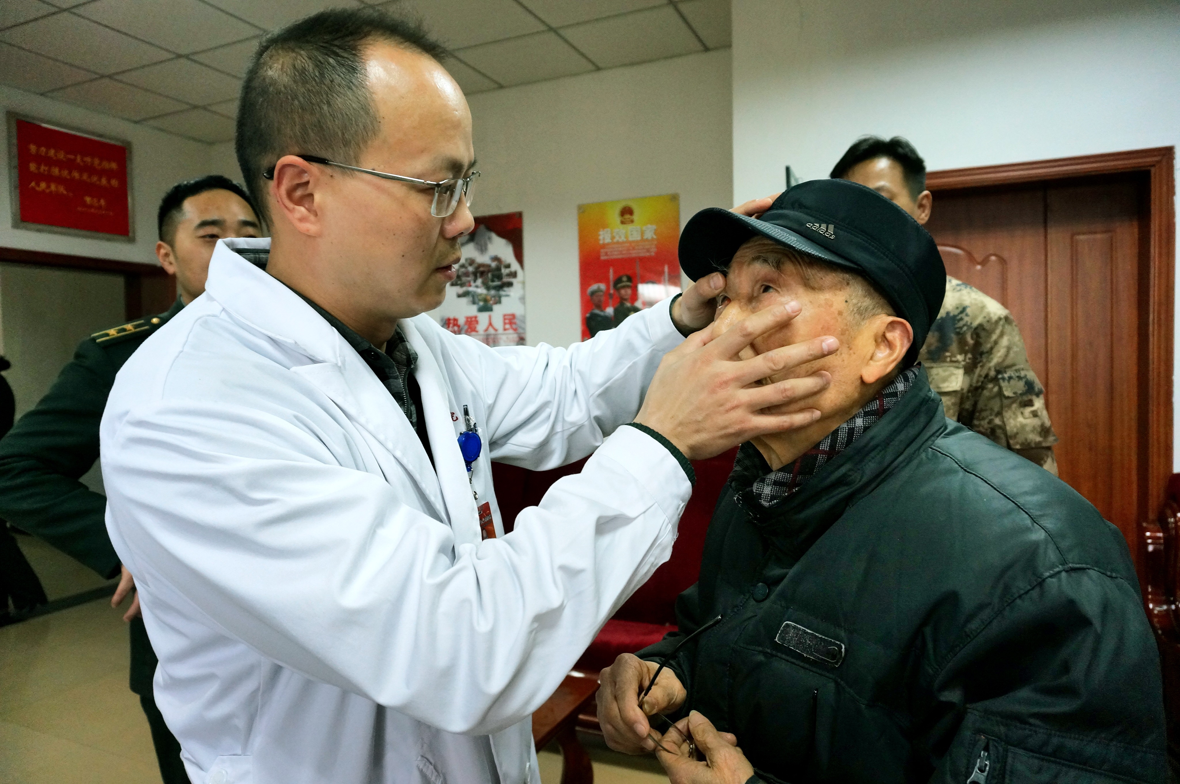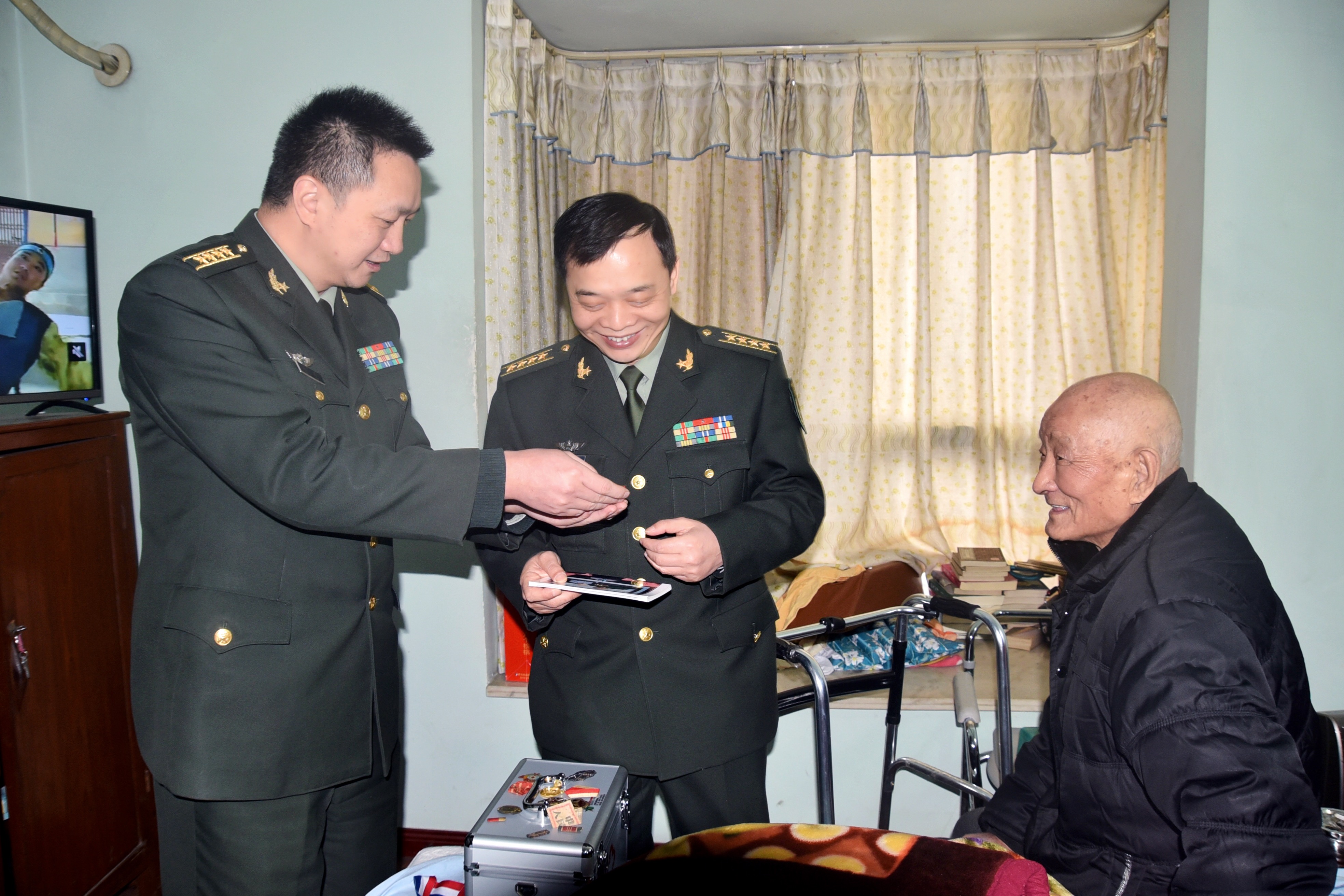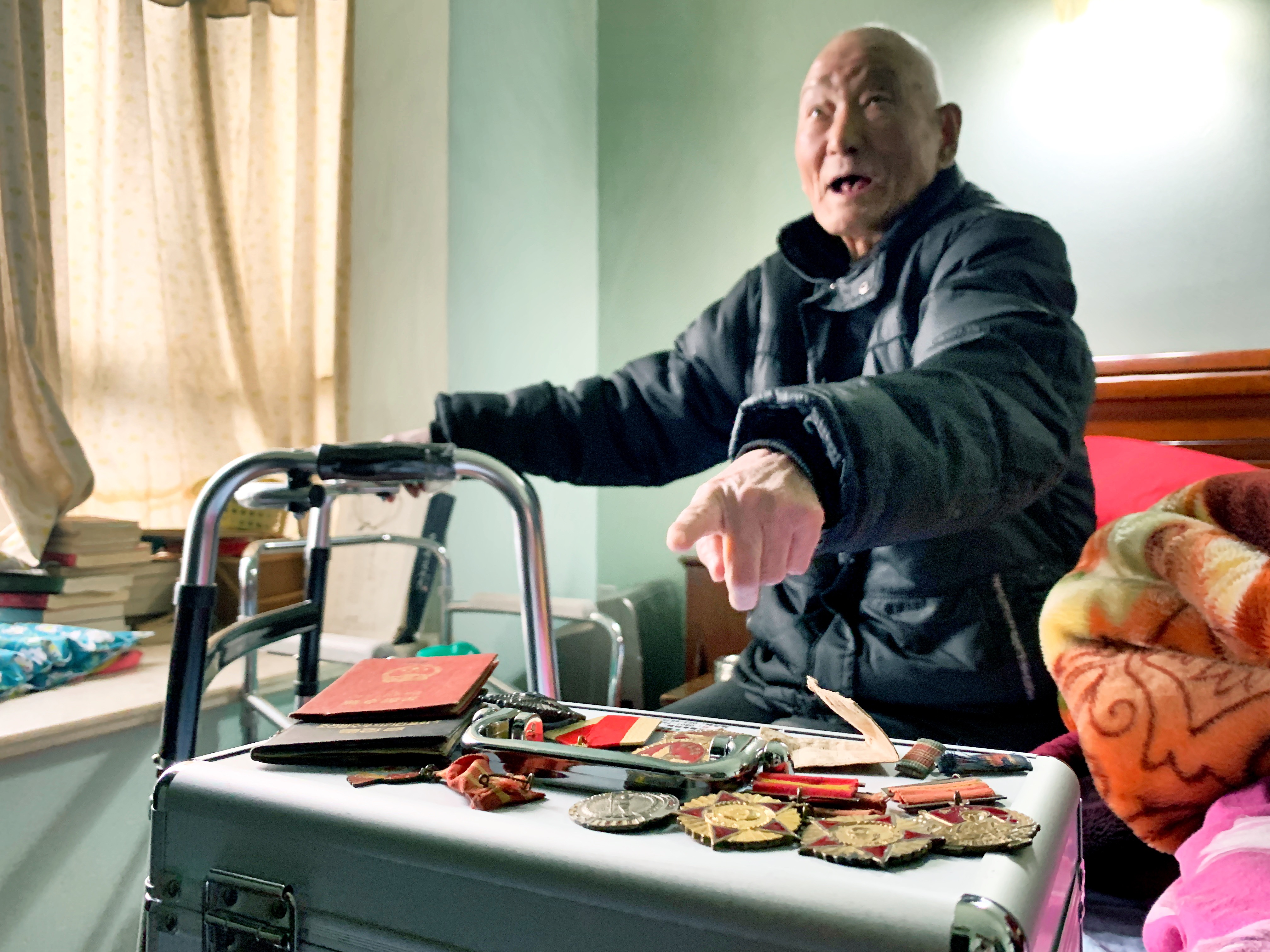 1月31日,手术后在家休养的94岁老干部刘树桐老人向前来慰问他的晚辈展示着自己大半生荣获的数枚军功章,讲述他所经历抗日战争、解放战争、抗美援朝的峥嵘岁月。