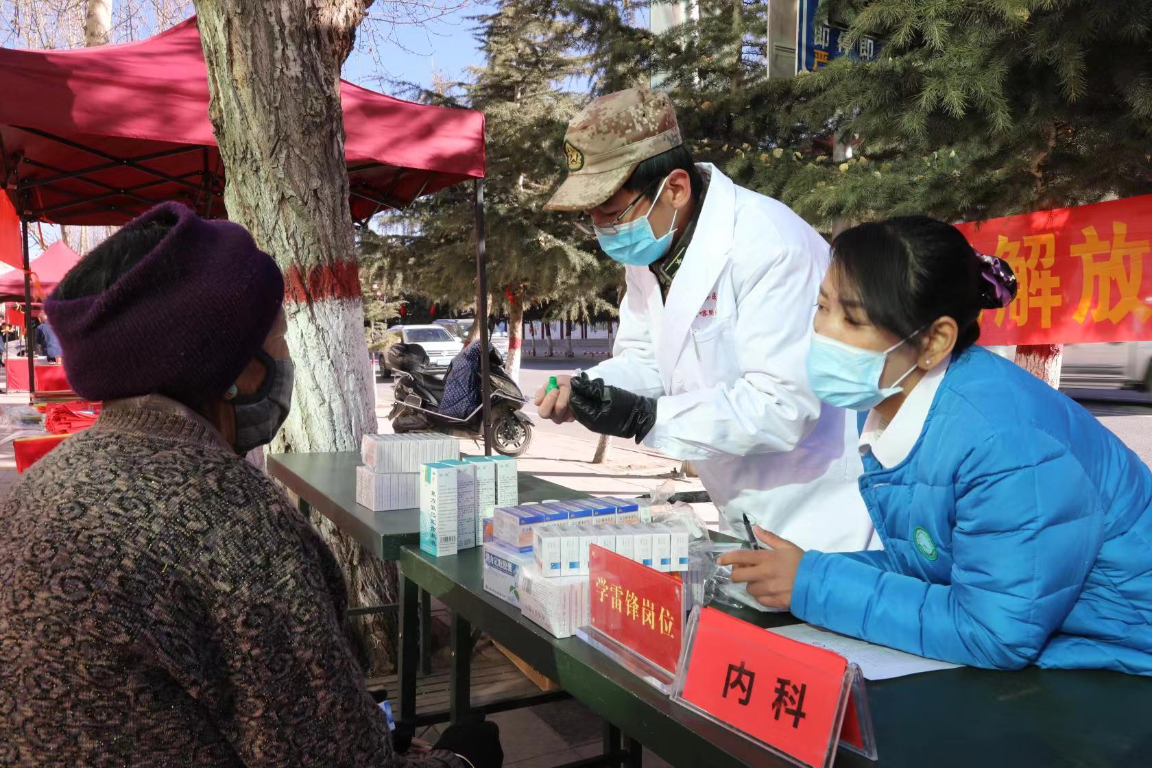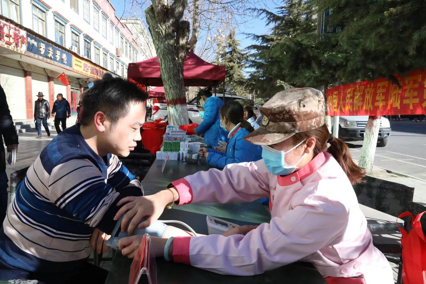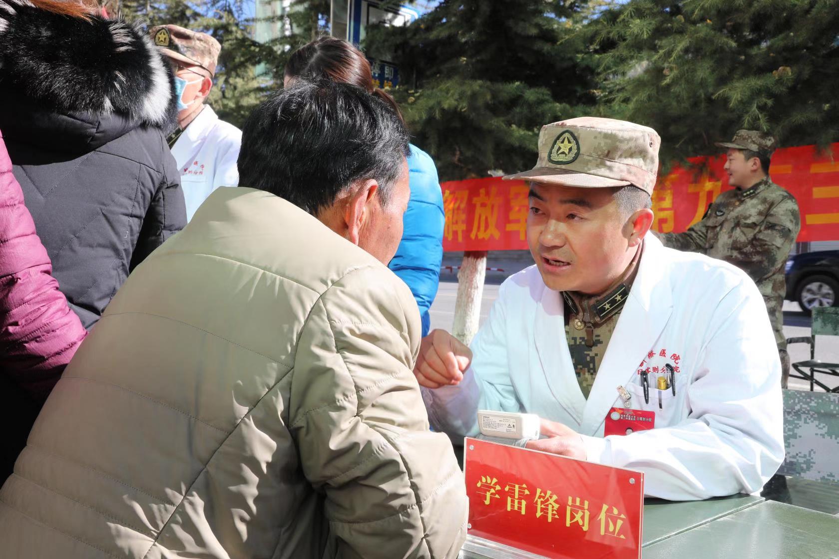 为大力弘扬雷锋精神,关爱市民健康,陆军第九五三医院(新桥医院日喀则分院)在日喀则市中心市区开展了为期一天的学雷锋日志愿者义诊活动。陆军第九五三医院内科、外科和门诊部的志愿者来到义诊现场,为广大市民提供免费测量血压、咨询并发放药品。志愿者医师耐心细致地向患者解答医疗问题,为患者认真检查身体,根据患者的具体情况给出治疗意见。
