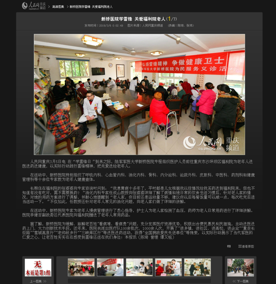 近日,人民网、大渝网、华龙网等多家媒体对我院学雷锋义诊活动进行了高频次报道,社会反响强烈。