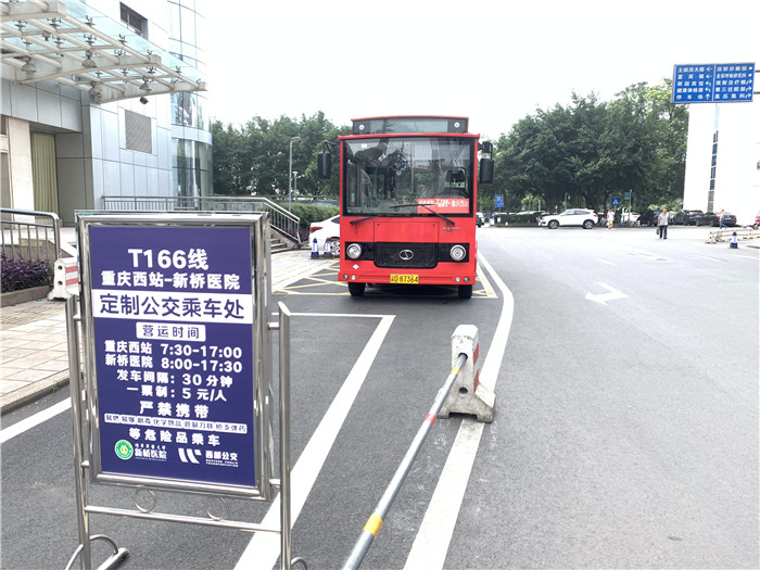 7月18日,重庆西站至新桥医院的T166路定制公交专线正式开通运营。这是医院与重庆西部公交公司共同合作,为方便群众从重庆西站来院就诊,解决出行困难,为群众办实事办好事的实际行动。班车从主病房大楼处发车,每30分钟一班,运行时间每天7:30至17:30,票价5元/人。