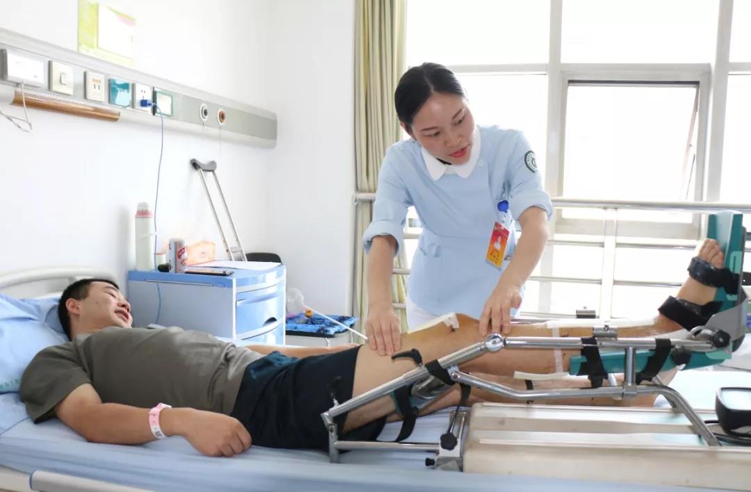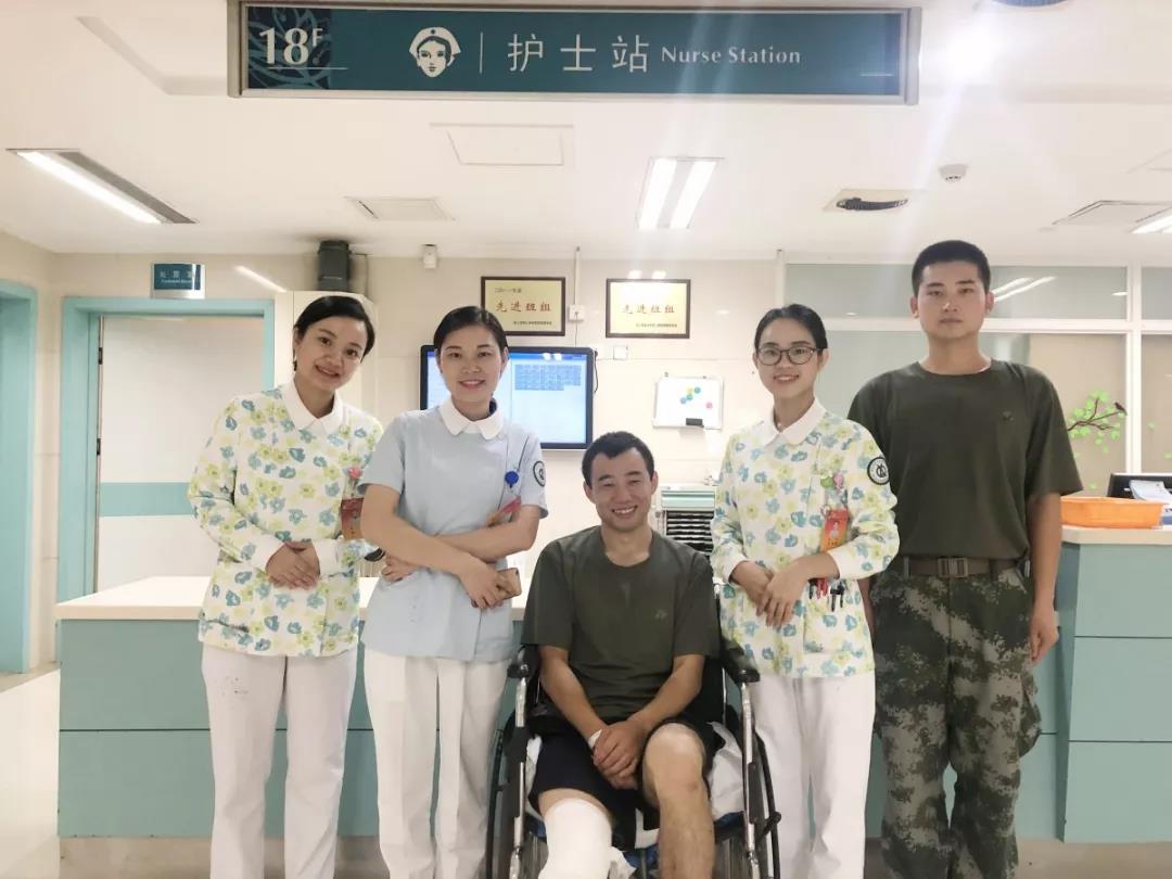 入院后,任亮住进了新桥医院骨科军人病房,得到了精心的治疗,经过一周多的消肿,新桥医院骨科专家成功为其进行了手术,术后在专家们的精心治疗下,以及骨科张玉梅护士长率领的护理团队细心护理下,慢慢恢复。期间,周畅护士长也到病房看望他,与他谈心,让他安心在医院医治。