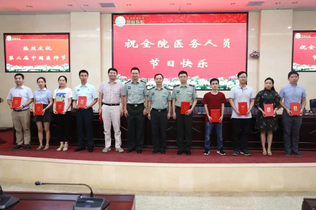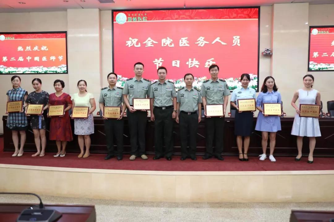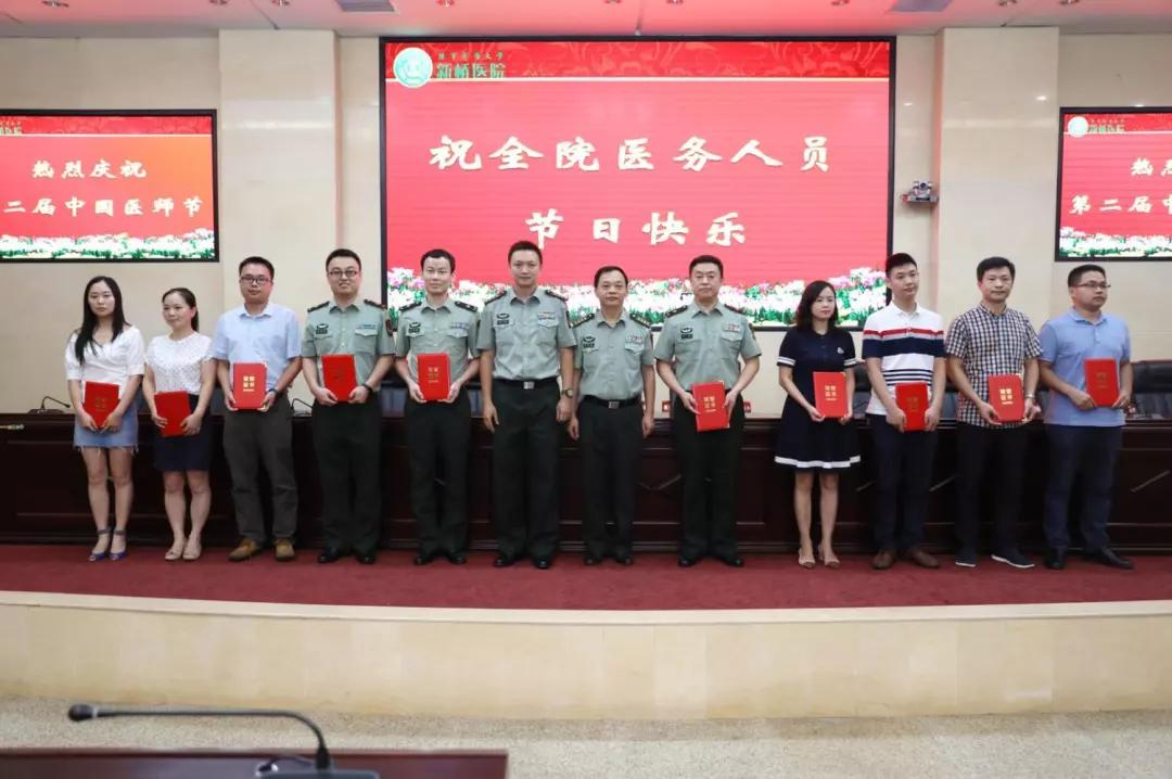 随后,新桥医院唐万能政委通报了2018-2019年获院级以上单位表彰的先进医师个人,宣读了医院2019年“医师节”表彰奖励通报,并和其他院领导一起,为获表彰的优秀医师集体和医师个人代表颁奖,意在表彰先进、弘扬正气。