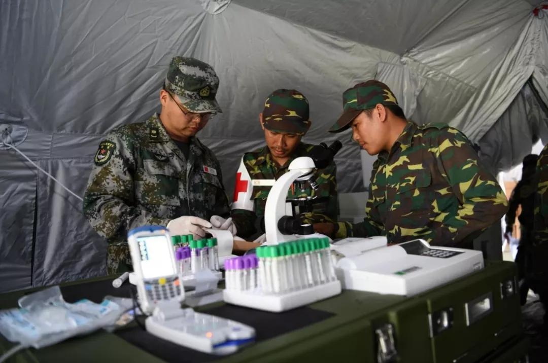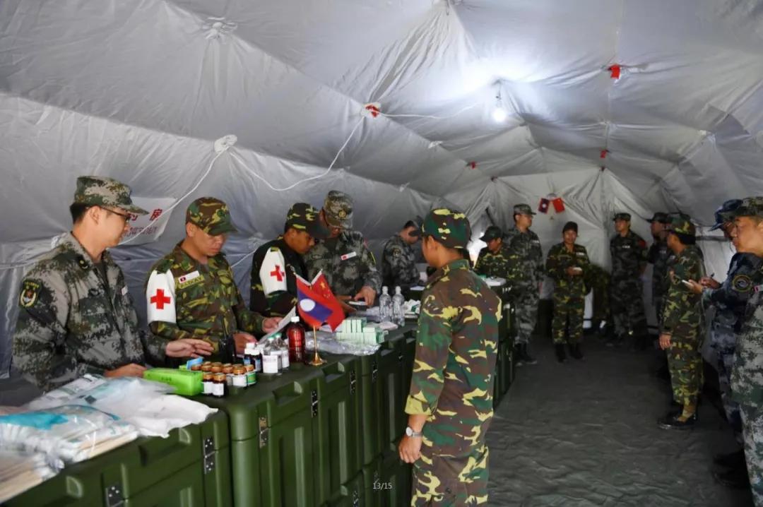 此次演训,“和平列车”医疗队携带了我军新型野战帐篷医院系统、陆军救护直升机、野战手术车、高机动型卫生防疫车等各型各类卫生装备。老挝人民军后勤部部长温康少将在参观完演训场后说,今年帐篷医院里的医疗设备,很多比去年使用的设备先进,希望老方参演人员能向专家认真学习,共同对抗灾难,造福老挝军民。
