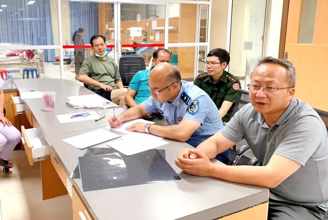 在听取完专家们的会诊意见后,任谦队长要求专家组们要做好伤员后续治疗和后送转运过程中病例文书和相关手续的完善,做好各种突发情况的预判,配备足够的医疗和护理力量随行保障,确保我们的同胞后送转运途中的安全。