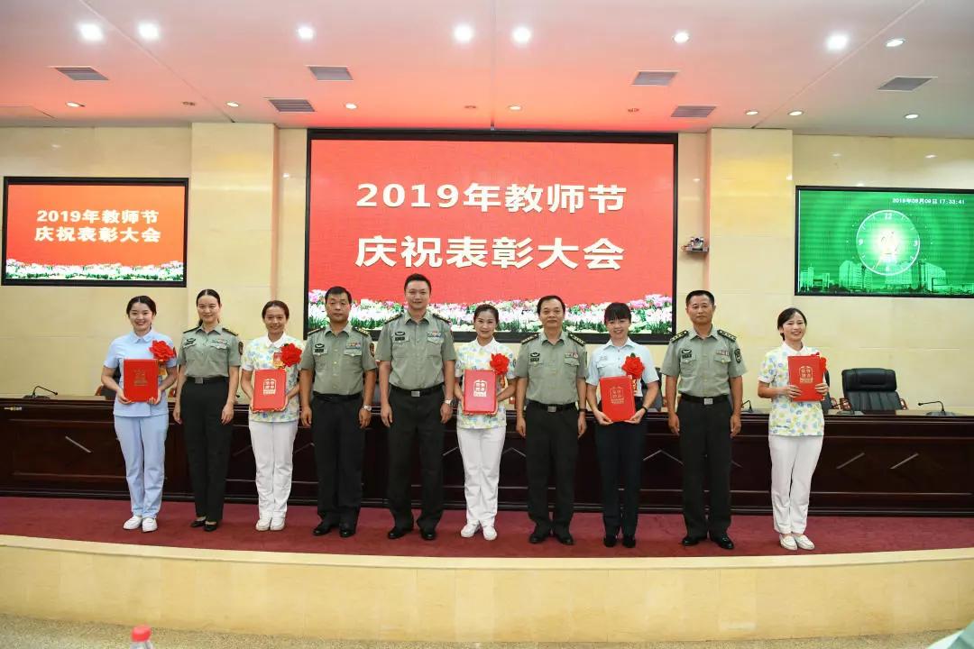 会议在“中国-老挝‘和平列车-2019’人道主义医学救援联合演训暨医疗服务活动剪影”视频中拉开了序幕,随后学员合唱团现场向老师们献唱一首《你笑起来真好看》,用歌声来表达对老师的祝福,并向三级以上专家教授献花。唐万能政委宣读了《2019年教师节表彰奖励通报》,院领导为获表彰的先进科室、先进集体和先进教师代表颁了奖。内科与物理诊断学教研室主任王江教授作为教员代表分享了多年来对教学工作的体会和见解,表明了献身军队教育事业的决心。