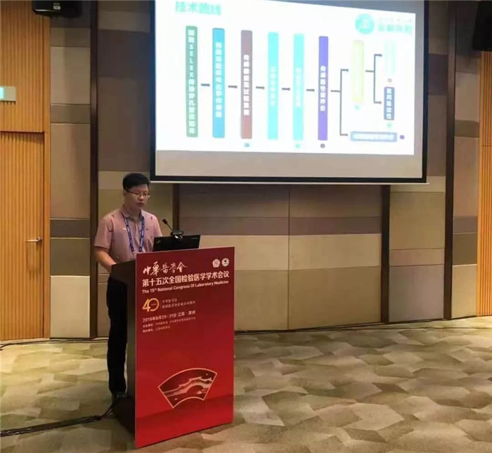 新桥医院检验医学中心孟凡飞做了" 基于核酸分子互补杂交的新型干扰素-γ适配体电化学传感器的制备"的优秀论文汇报。