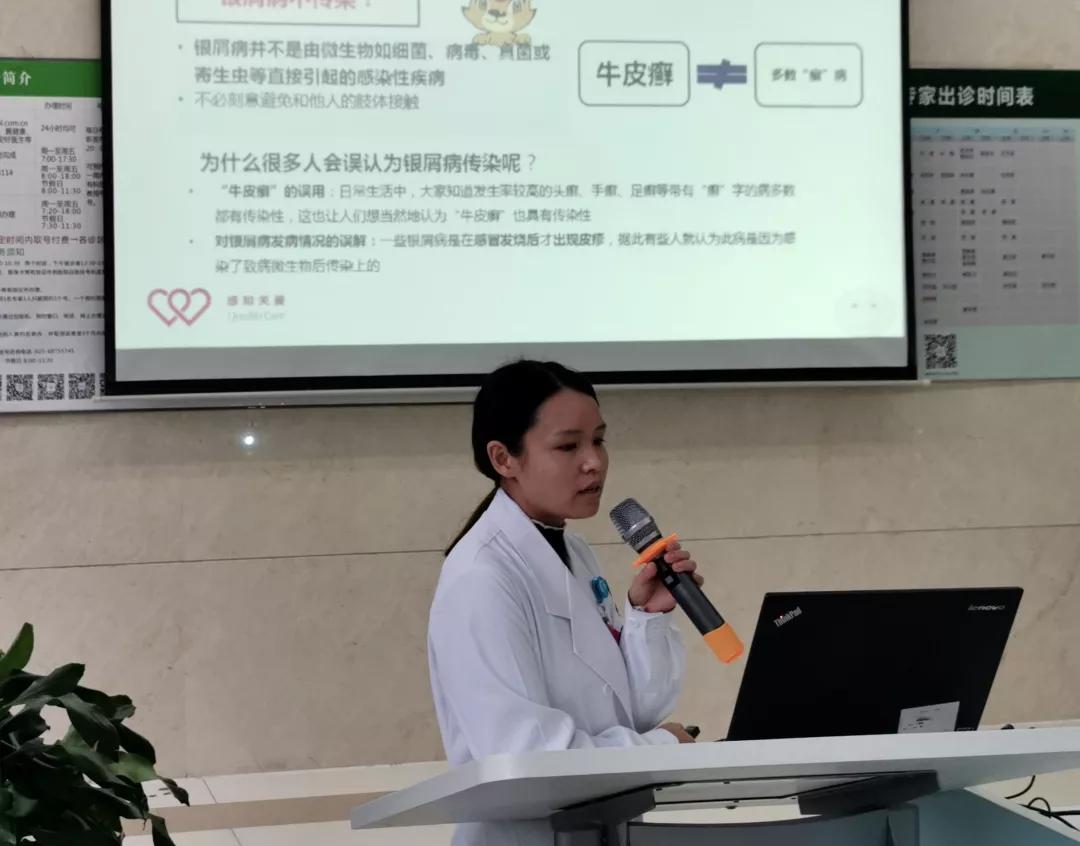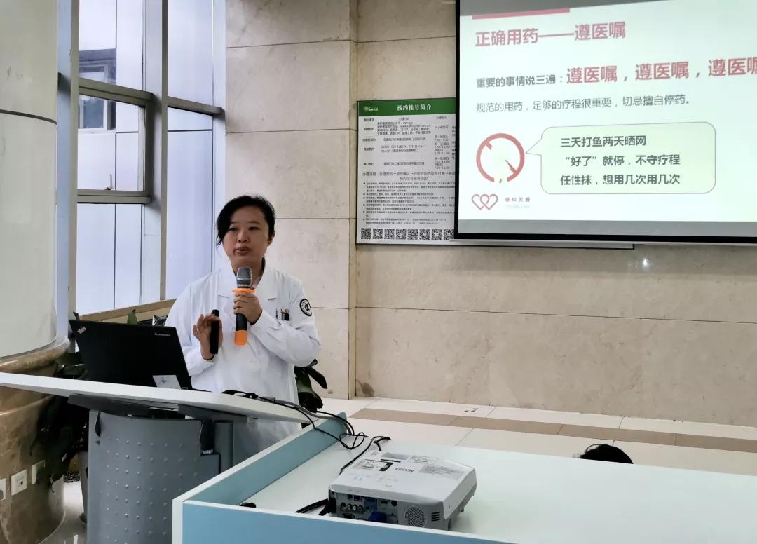 活动中,新桥医院皮肤风湿免疫科孙敏医生,诸蓉医生分别从正确认识银屑病,银屑病的正确用药、皮肤护理、避免诱发及加重因素和起居饮食等多个方面,运用图文结合,事实案例和你问我答等方式与患者进行了全方位的沟通讲解。