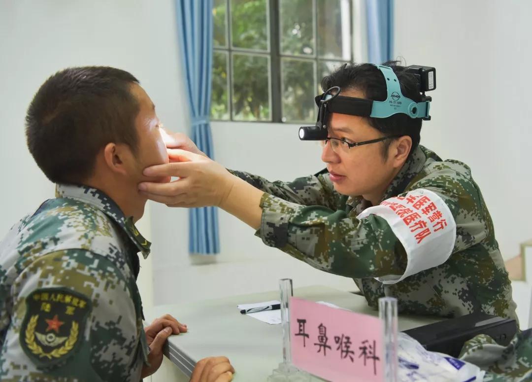 在“红色军医边关行”活动中,耳鼻咽喉科主任邓安春教授悉心为战士们义诊查体同时,就训练中听力保护、日常鼻炎的预防等进行了科普讲解。消化内科彭学副主任医师、肿瘤科张岸梅博士、保健科龙铭医师等还为边防官兵进行了查体和义诊。此外,大学预防医学系卫生管理专家、陆军特色医学中心野战外科研究所特殊环境战伤防治研究室严军主任等也随同医疗队开展健康作业能力和基层官兵健康保护调研。