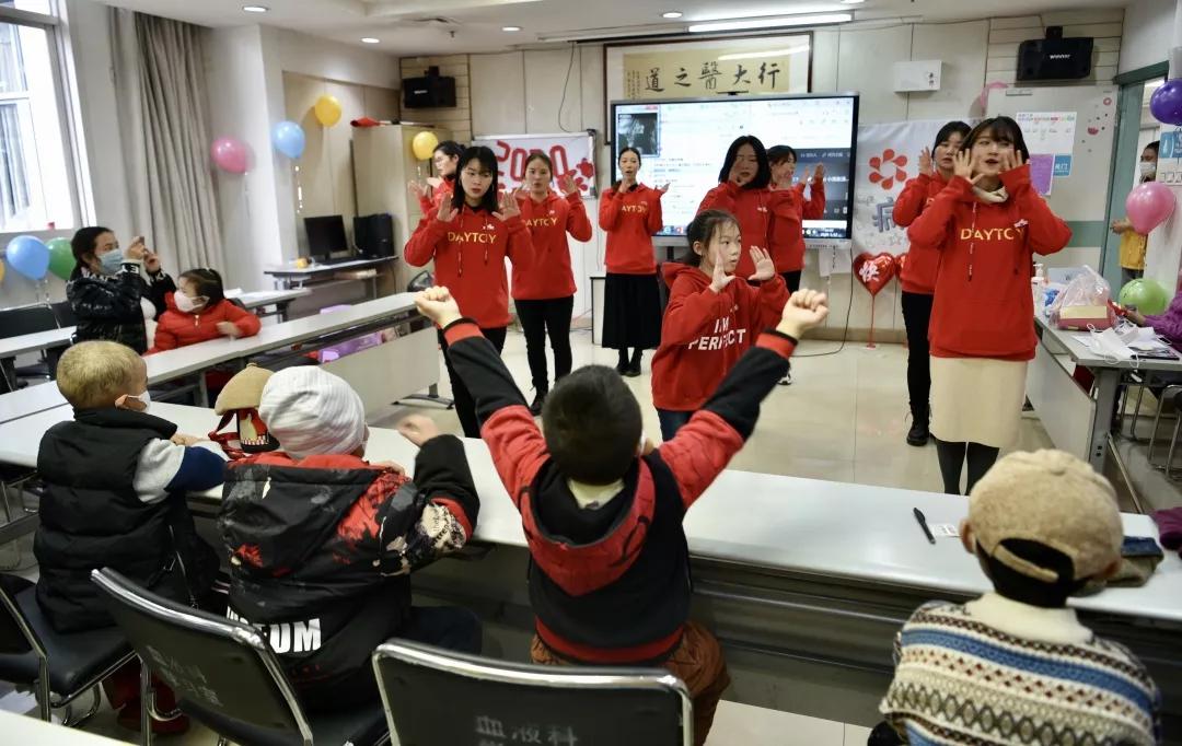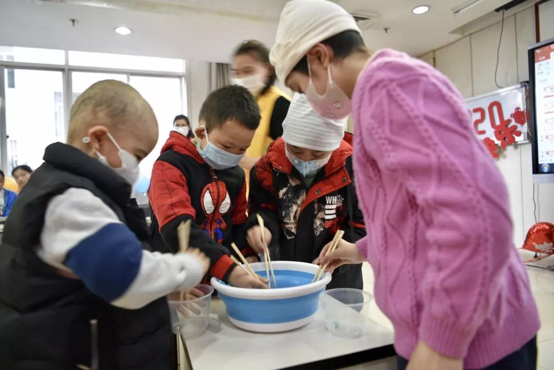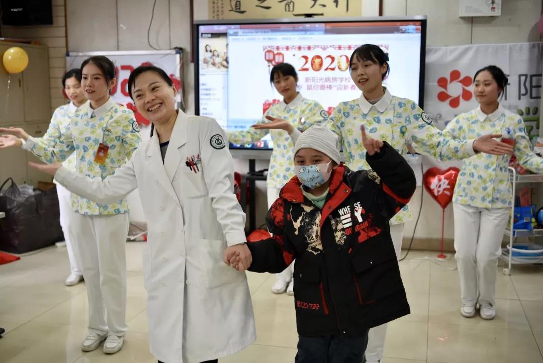 1月17日,正在陆军军医大学新桥医院血液科住院治疗的5个白血病小朋友,同医生和护士姐姐一同歌舞,与相伴数月的志愿者们共同游戏,小脸洋溢着开心的笑容,眼睛里炯炯有神的目光穿透了病魔的阴霾,在重庆首个“新阳光病房学校”的迎春主题课活动中,欢快愉悦地度过了一个别样的春节。