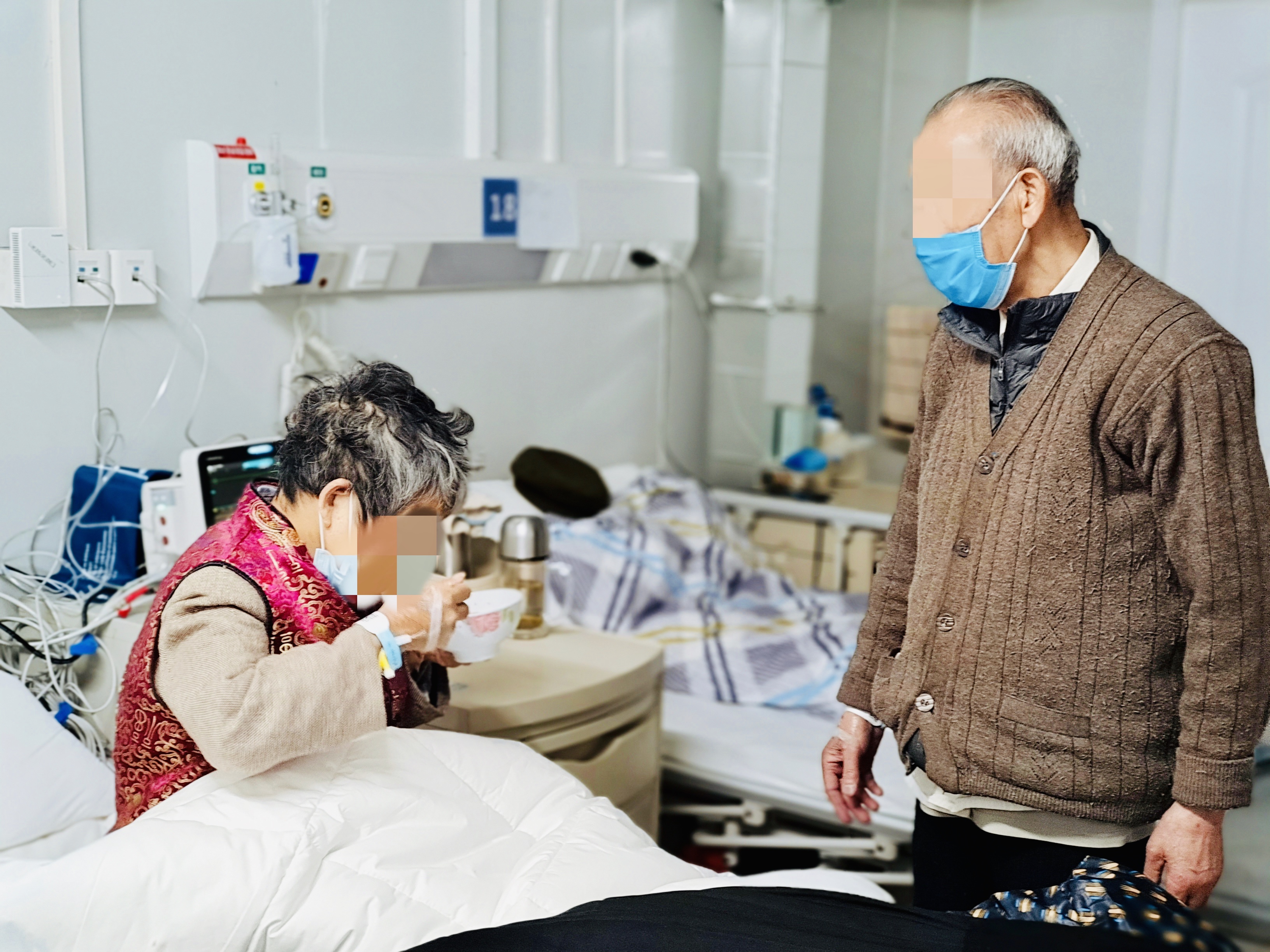 张爷爷悉心照顾在同一间病房的爱人杨奶奶