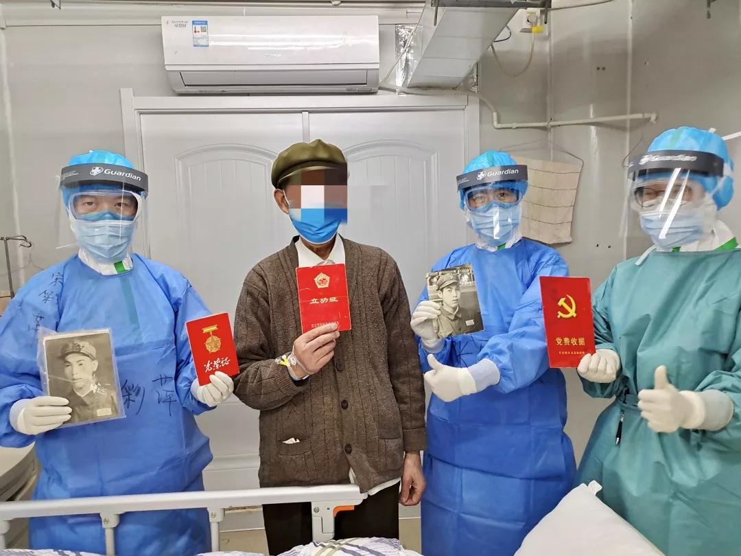 张爷爷向医护人员展示他的立功证和老军装照