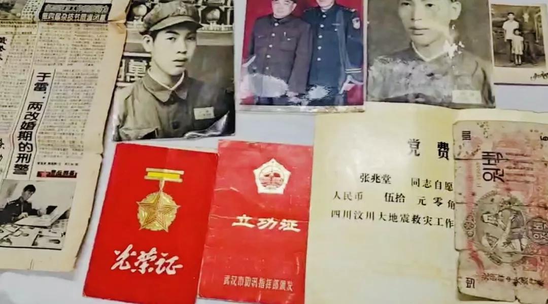 张爷爷一边说一边从病床床头柜里掏出了一包东西。当他用颤颤巍巍的手打开时,一件件用塑胶袋严密包裹着的“历史文物”穿越到眼前:立功证、光荣证、当兵第一天的军装照、记录他几十年光荣的老照片、有报道他事迹的老报纸……