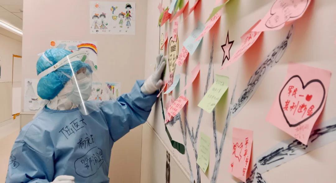 在武汉泰康同济医院感染二科隔离病区里的“许愿树”
