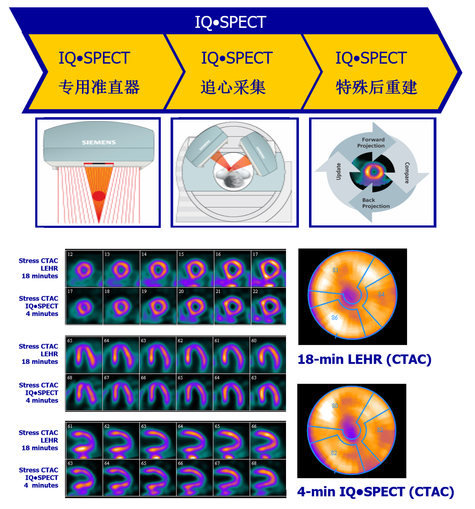 采用IQ心脏专用准直器、追心采集、特殊后重建技术提高心肌显像速度及心肌灌注缺血评估的准确性