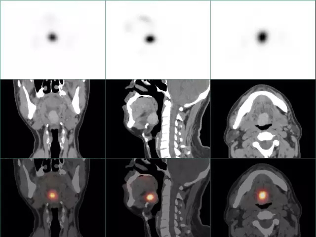 甲状腺显像结合颈部SPECT/CT断层显像融合特异性显示异位甲状腺 |
