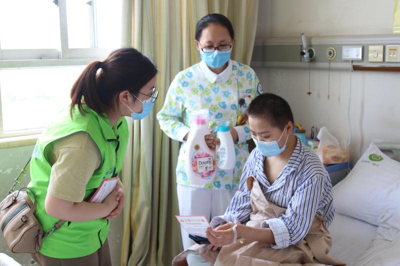 清洁消毒、预防感染一直都是血液病患者们的必修课,衣物的防霉防菌更是首当其冲。为了帮助小朋友建立清洁消毒意识,新桥医院血液病医学中心携手重庆山城志愿者,为每一位在院的血液病患儿送上爱心洗衣液。