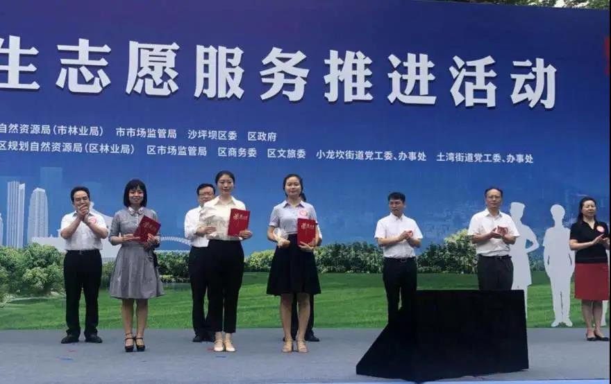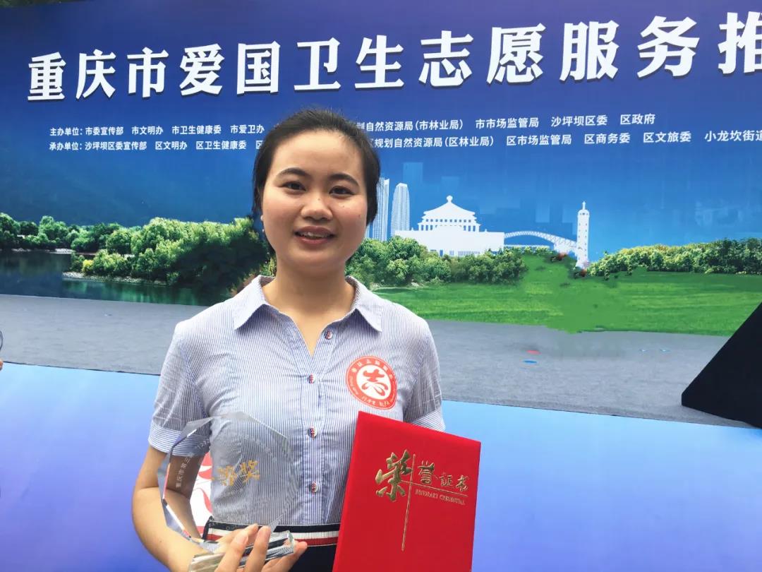 副市长、市政协副主席、市爱卫会主任屈谦为获得重庆市健康科普大赛一等奖的选手代表颁奖。