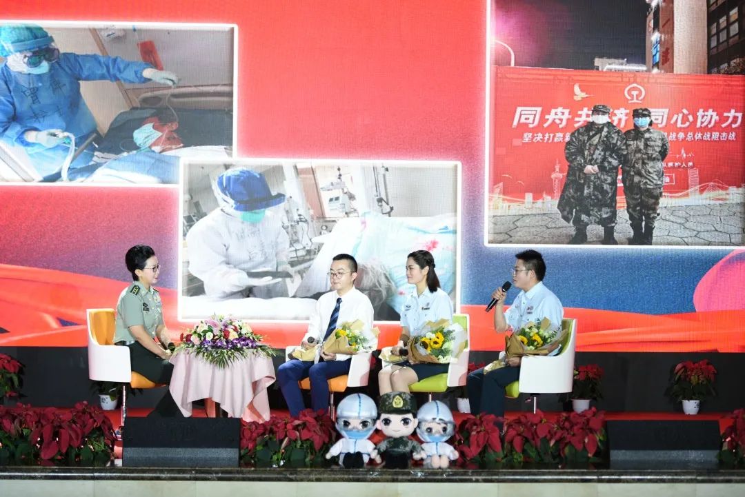 在武汉火神山医院病历评比中荣获一等奖的消化内科何佳霖医生,荣获“全国五四青年团干部”的神经内科王云护士长,以及男护士群体代表的全科医学科曾伟护士长作为医疗队医护人员代表也与大家讲述了自己的武汉战疫故事。