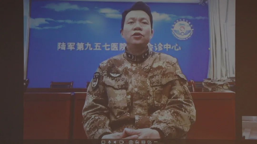 因为还在执行任务,周政教授、胡明冬副主任、张瑗副主任和贺英副主任分别通过视频连线的形式参加了访谈,通过视频与战友和同事们讲述了战斗一线的经历。年过50岁的周政教授在世界屋脊为战士手术却被一张战士的纸条所感动;刚刚结束武汉战疫的胡明冬主任,又闻令而动再上高原留下了对家人的歉意;视频中离一线最近的张瑗副主任经历了战争即将来临时的壮怀激烈与视死如归;瘦弱的女将贺英副主任却是坚守一线时间最长,用自己的坚毅为一线官兵筑起了一道坚不可摧的心理防线!