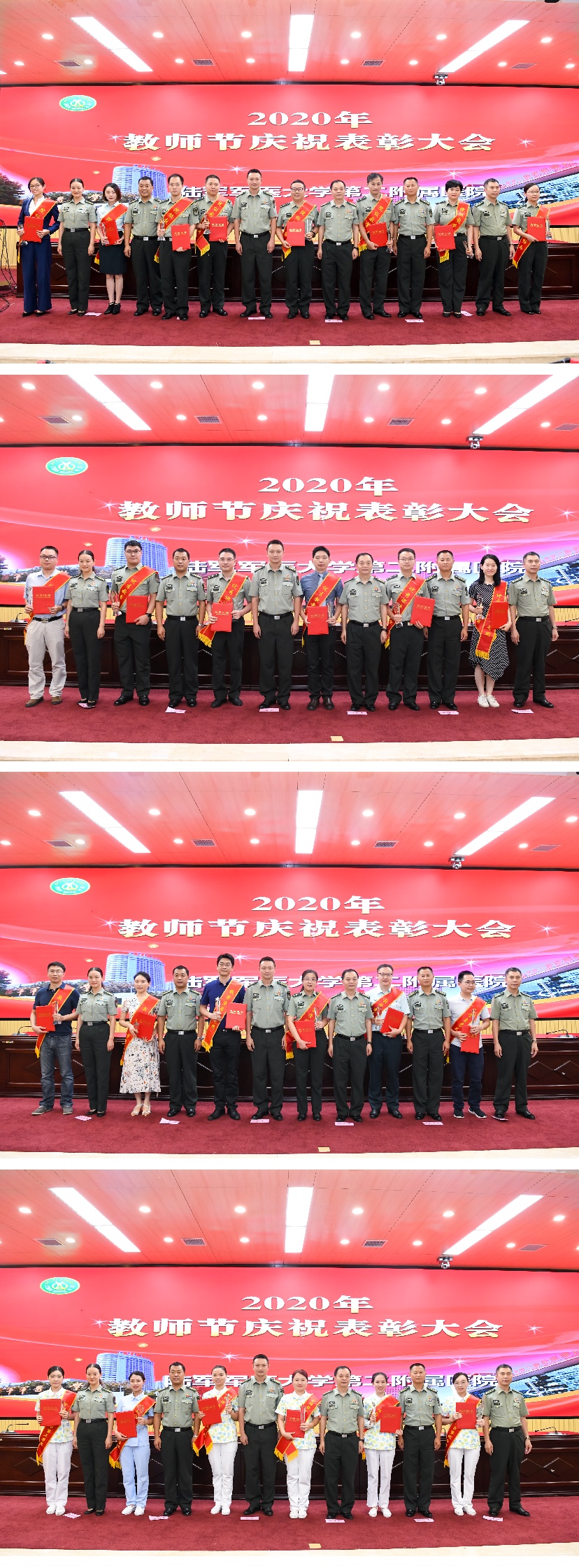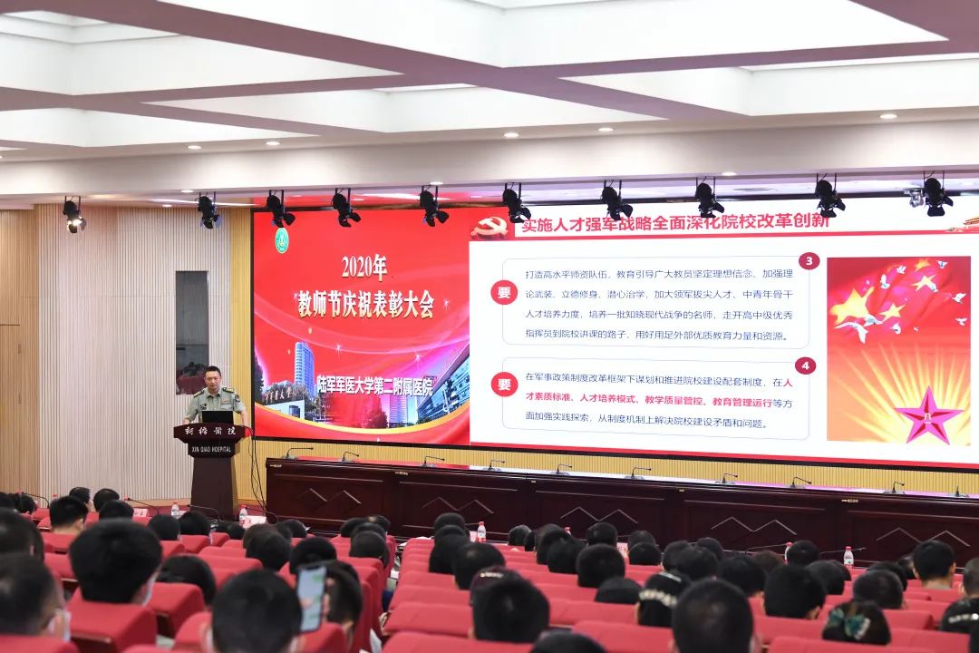 丹桂飘香季,硕果芬芳时,9月9日,在第36个教师节到来之际,陆军军医大学新桥医院隆重举行“2020年教师节庆祝表彰大会”,在全国抗击新冠肺炎疫情表彰大会载誉而归医护人员也参加了大会,大家认真学习了习主席重要讲话,部署了贯彻落实全军院校长集训精神的工作,回顾了抗击新冠肺炎疫情中的感人事迹,学习了生命至上、举国同心、舍生忘死、尊重科学、命运与共的伟大抗疫精神,用榜样的力量激励全员练兵备战,实现新时代强军目标。