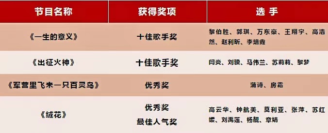 获十佳歌手奖第二名