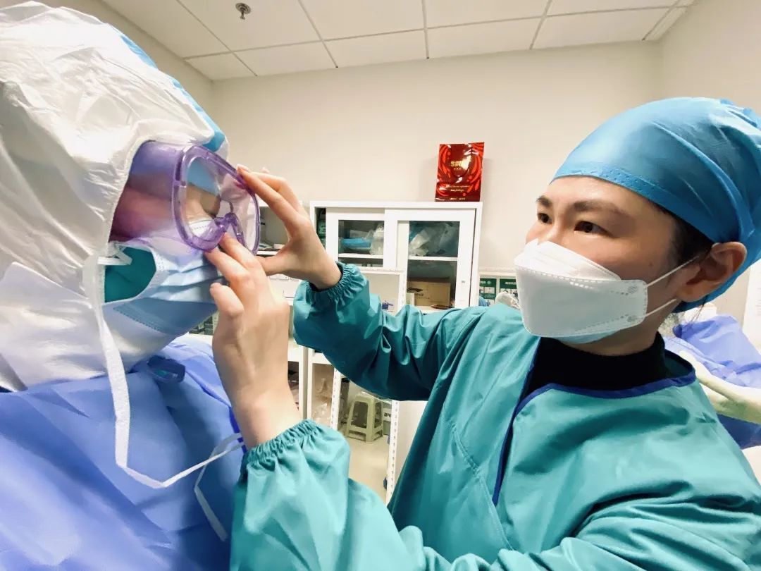 在病区,需要穿戴护目镜、口罩、防护面屏、内外手套、防护服、靴子、靴套等十一件防护用品,面对烈性传染病,做好感控防护是每一位队员的“基本功”和“必修课”,当时队伍中一些战“疫”新兵实战经验少,难免有些感控细节操作疏漏。为了保证“零感染打胜仗”,队员们每次穿防护服时,作为经验丰富的“排头兵”,唐棠就是进入红区的最后一道“守门人”,严格按照感控流程为大家把关。“转过身去,我再看看!”“外层口罩下沿带子没有系紧,不能戴面屏。”“实在难受必须出来,不能硬扛,避免被感染。”她每一次的严苛要求,都为队员们增加了一道感控的“安全阀”。