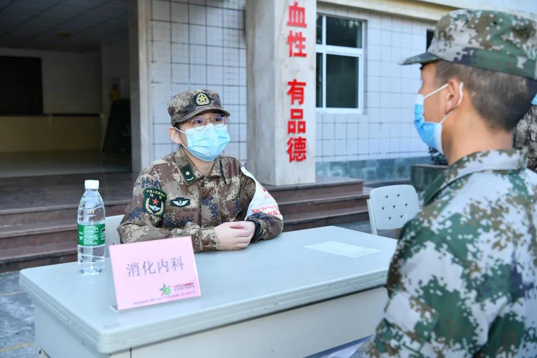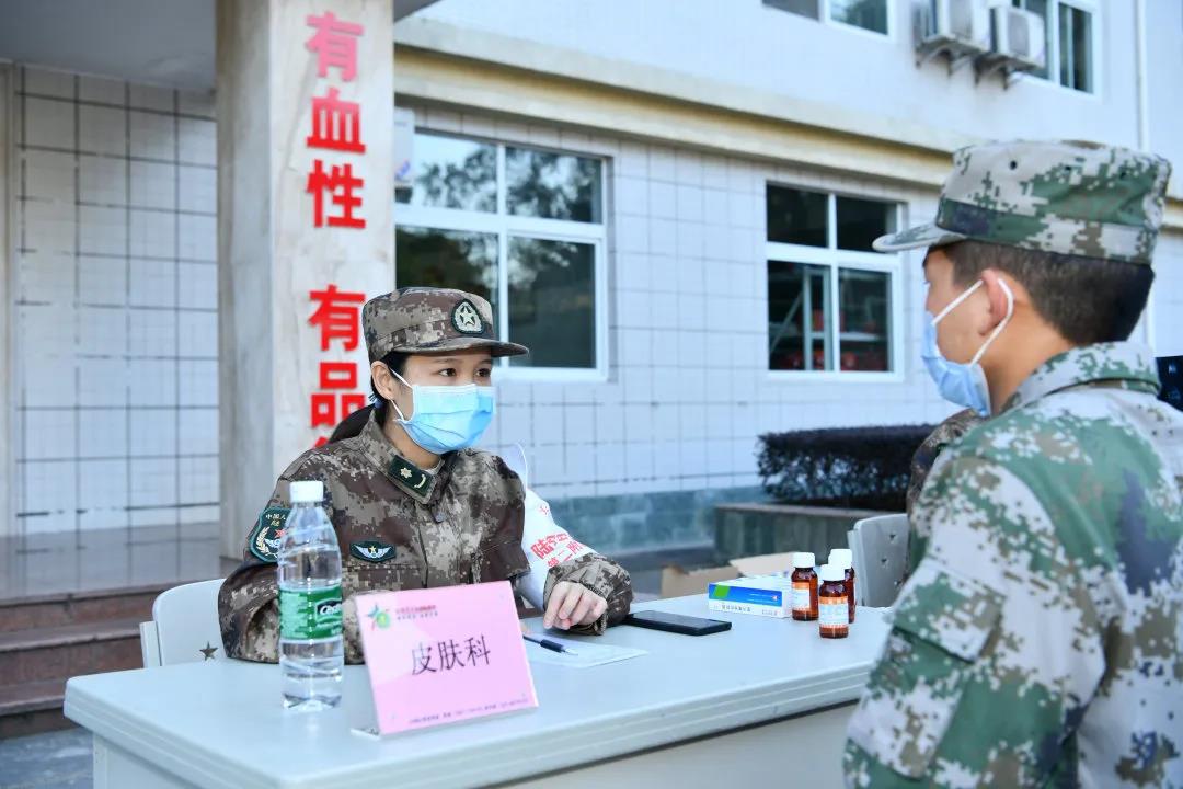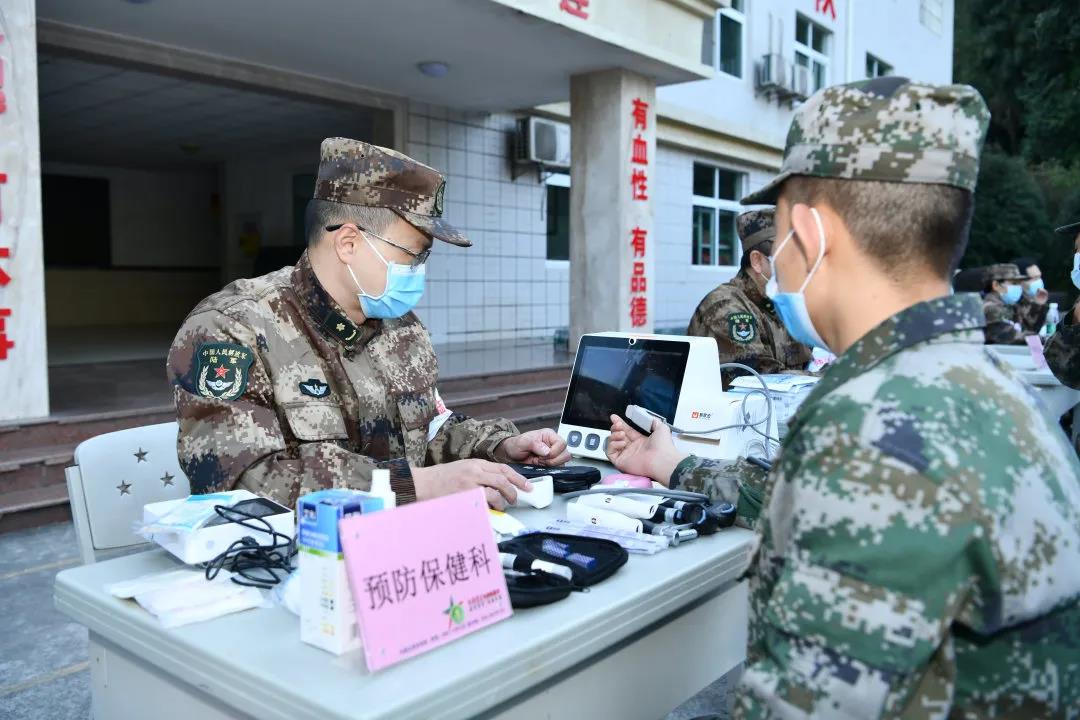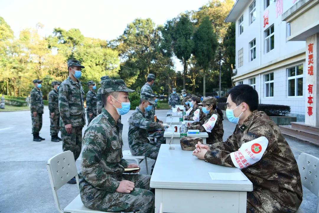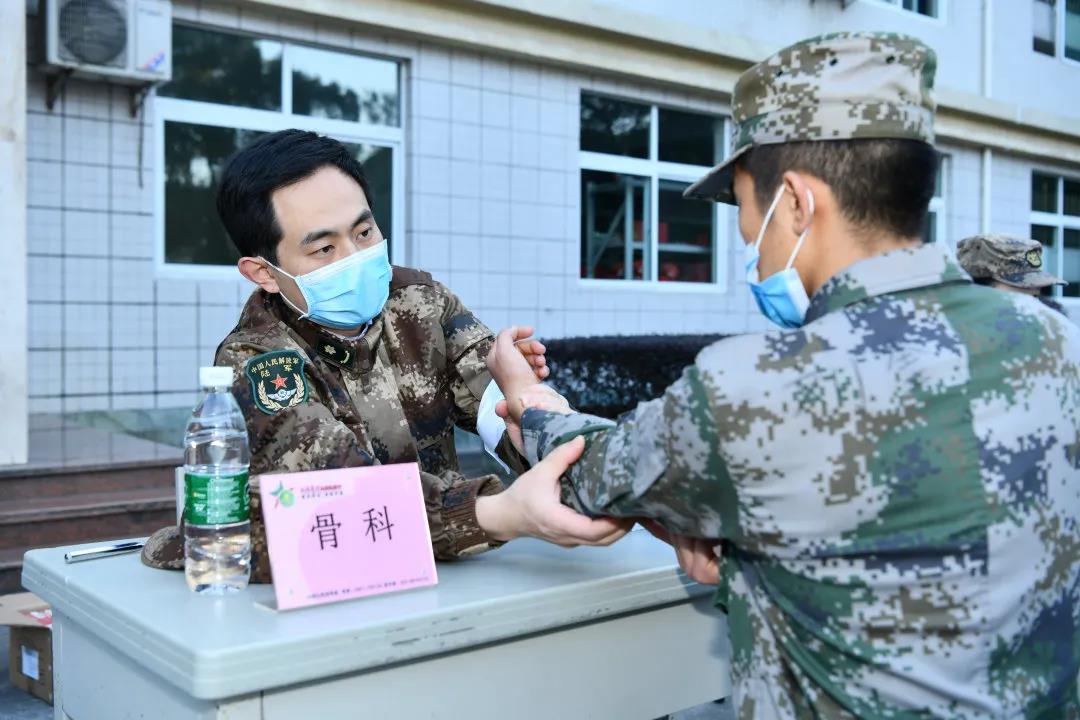 在重庆某新兵训练现场,接受检查的新兵们有序地“候诊”,新桥医院的保健科、骨科、消化内科、泌尿外科、疼痛康复医学科、皮肤科、眼科、耳鼻喉科等的专家们打开黄色的背包,为官兵们开展优质、专业的检查检验服务,并对部分有训练伤的官兵们提出针对性的预防、保健和诊疗建议,同时也为官兵们建立了健康管理档案,为后续的健康跟踪服务提供了依据。