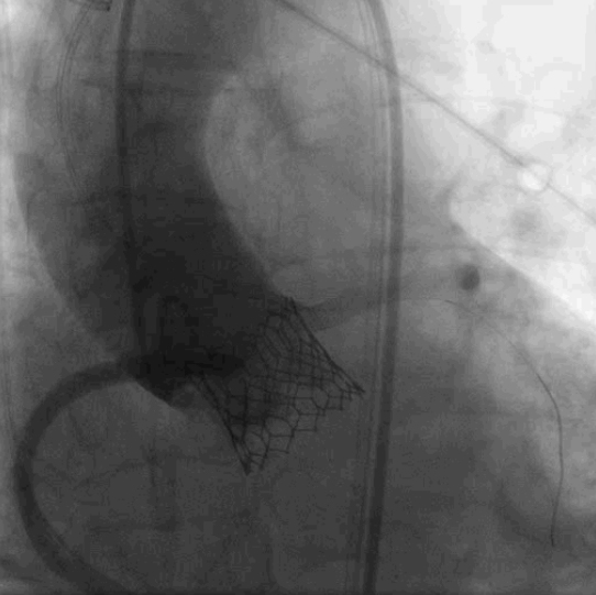 ▲瓣膜释放后造影