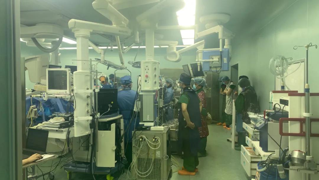 术中,患者突发室颤和血压下降,最凶险的情况还是发生了---冠状动脉阻塞!晋军教授及其团队果断决策、沉着应对,千钧一发之际为患者紧急开通血管,最终顺利将瓣膜精准释放到预期位置,手术圆满成功。