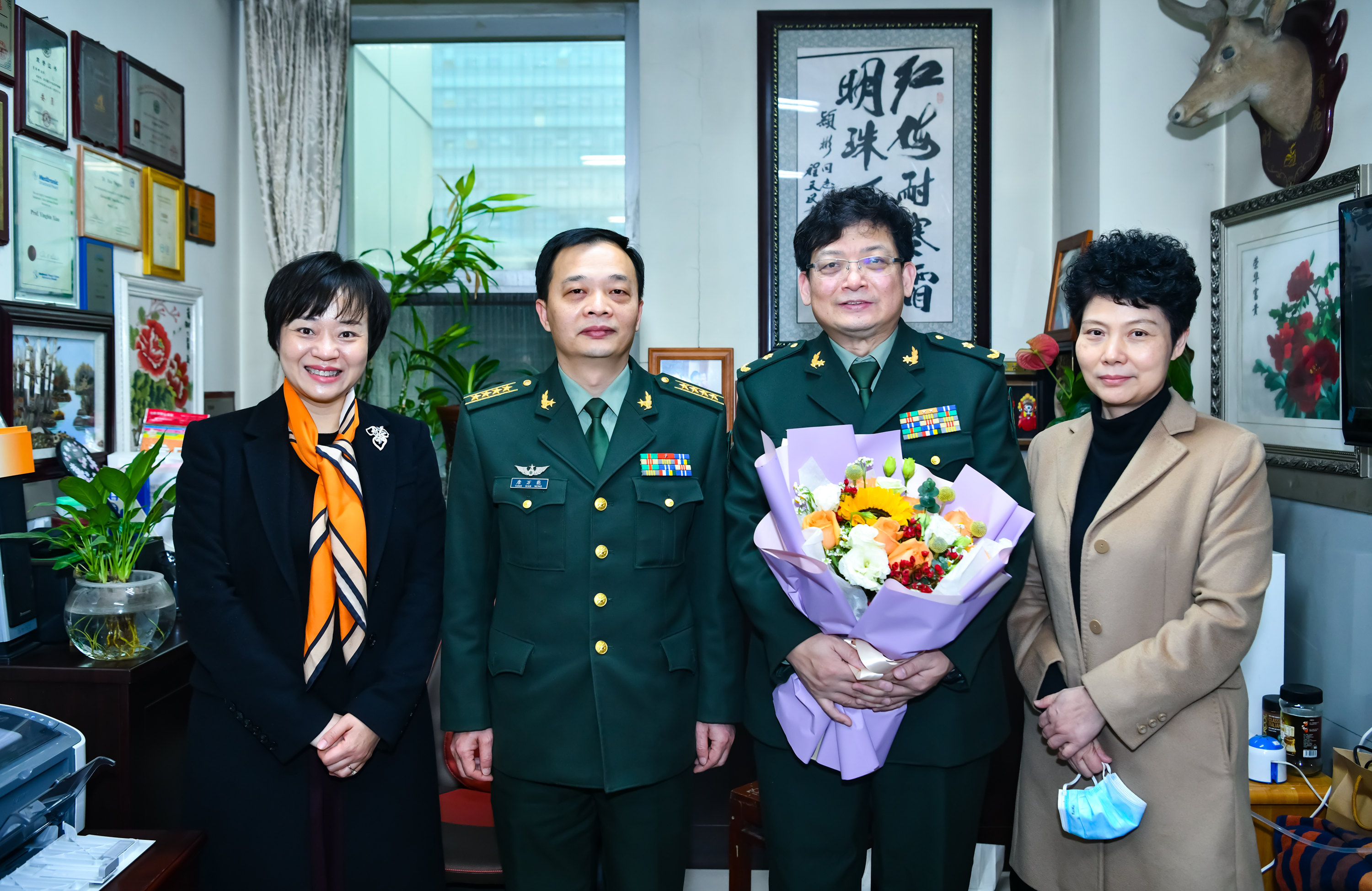2月2日下午,重庆市卫健委二级巡视员赵世利、人事处处长王玲带队来新桥医院慰问肖颖彬教授、杨清武教授、晋献春教授等部分专家,代表市卫健委为他们送去节日的问候,新桥医院吴昊院长、唐万能政委等院领导陪同。
