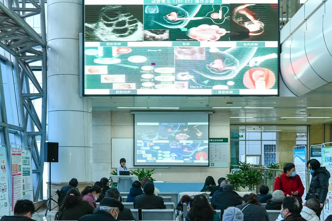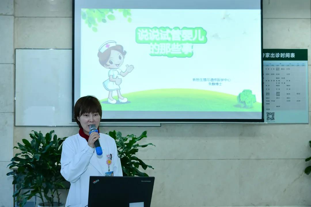在新桥医院门诊部一楼健康教育园地,妇产科的朱静博士作了主题为《说说试管婴儿哪些事》的主题讲座,并现场与广大不孕者互动答疑解惑。