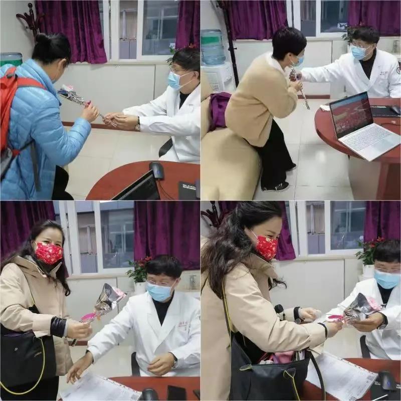戴主任在为每一位女性患者看诊结束后,悄悄从抽屉拿出一支康乃馨送予患者,鲜花和笑容为小小的诊室带来了春日的氛围,鼓励患者的同时希望大家早日康复,福运绵长。