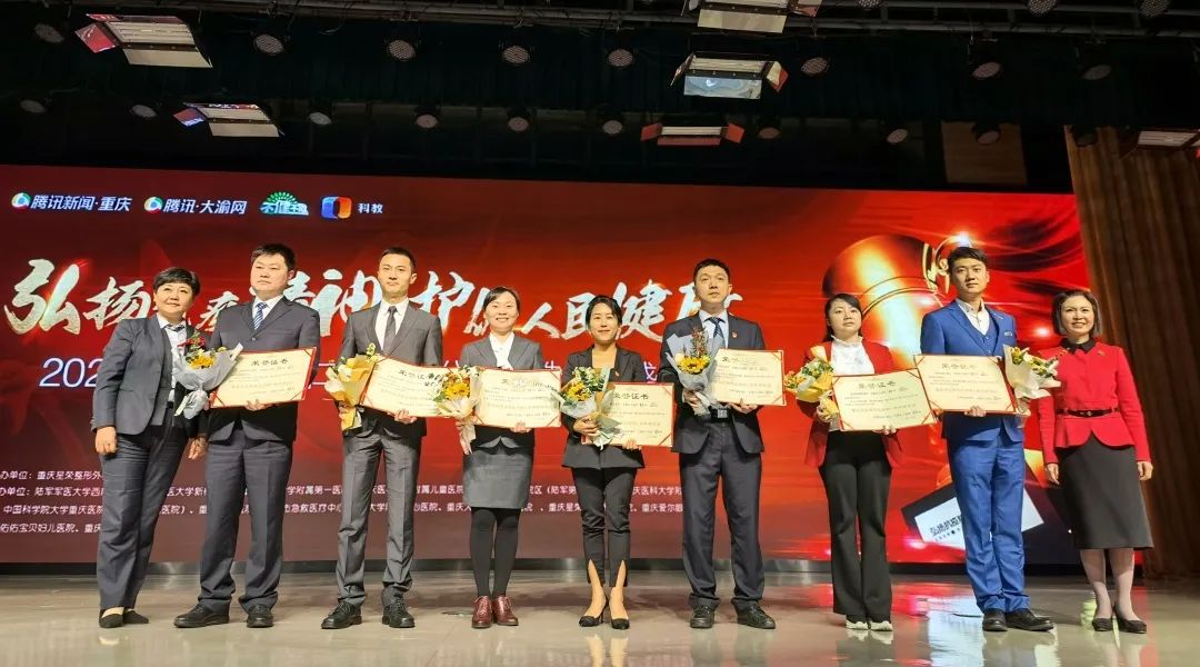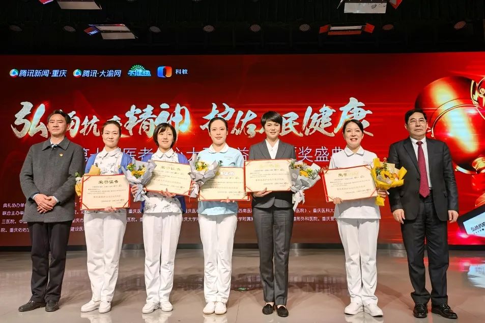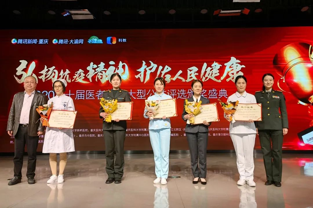 刚刚,由“腾讯·重庆健康”联合“重视科教·不健不散”举办的“第十届医者仁心”大型公益评选活动举行隆重颁奖典礼,新桥医院驰援武汉金银潭、火神山医护团队和驰援武汉泰康同济医护团队荣获“重庆最美抗疫英雄团队”殊荣,多位医护人员在经过激烈的比拼和评选后,荣获重庆名医专家榜、重庆青年名医,最美护士长、最美护士表彰。