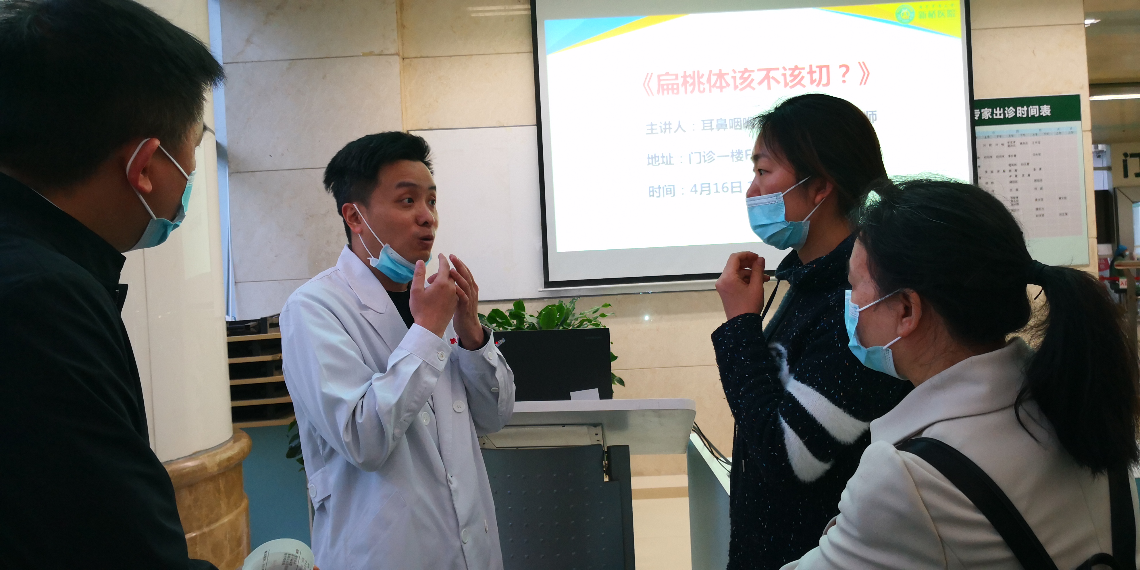 4月16日,为让广大市民了解扁桃体发炎的防治知识,新桥医院耳鼻喉科王昶医生在门诊部大厅一楼健康教育园地,举办了以“扁桃体发炎怎么办?这些情况下切除扁桃体对孩子会更好!”为主题的公益健康讲座。
