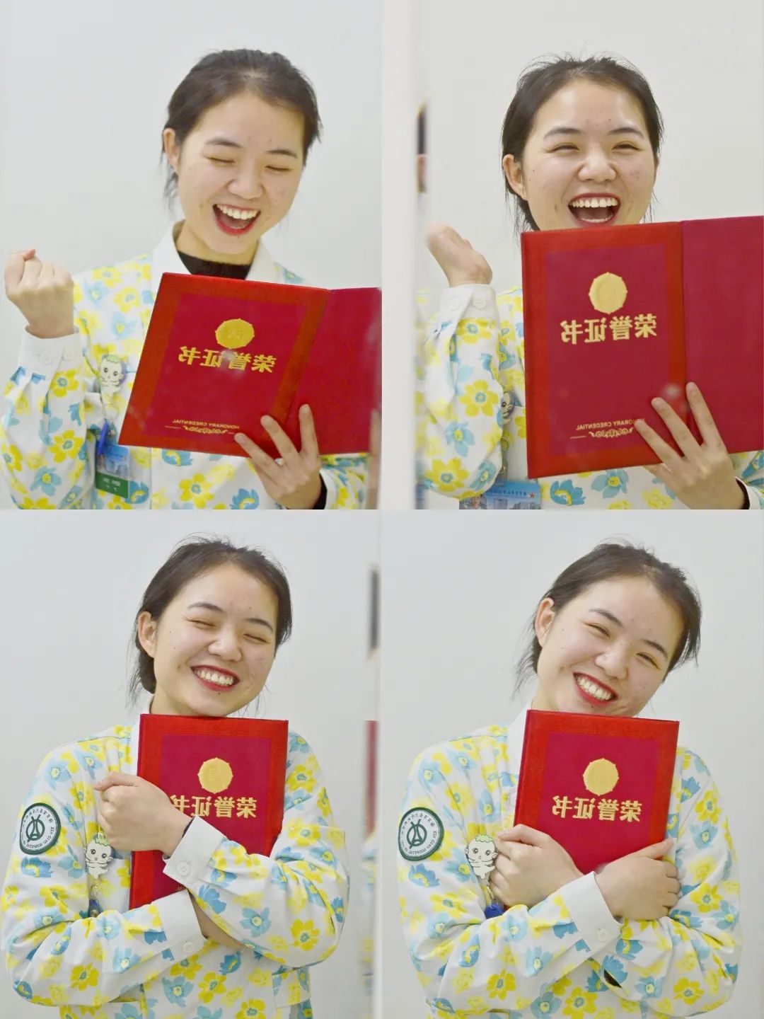 美小护贺春花,工作2年来,一直兢兢业业、勤勤恳恳,获得各方面一致好评,拿到医院颁发的“优秀护士”荣誉证书时,一笑世界晴。