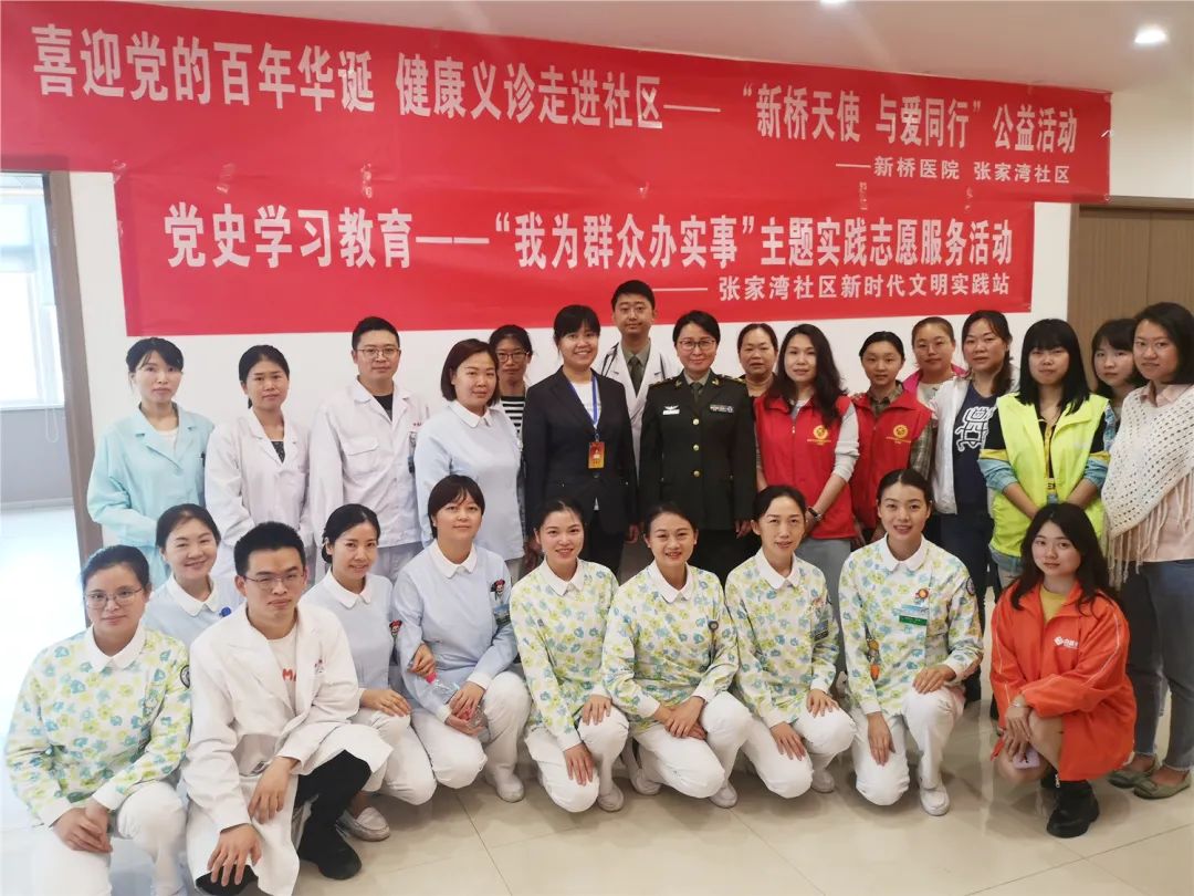 为喜迎建党100周年,践行为群众办实事的理念,新桥医院护理专业学组特别启动“新桥天使·与爱同行”公益月活动,通过深入多个社区,开展健康讲座、公益义诊、健康咨询等形式,大力普及科普健康知识,传播健康生活方式,在“5.12”国际护士节即将到来之际,让人民群众切实感受到,新桥护理天使的仁心服务。