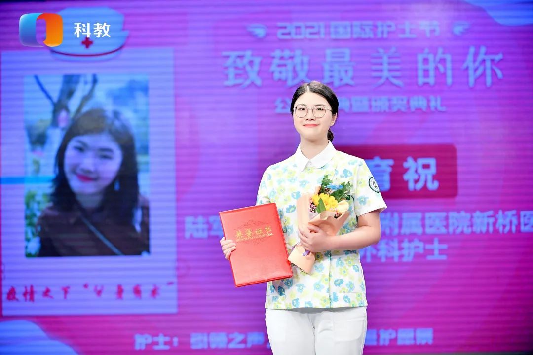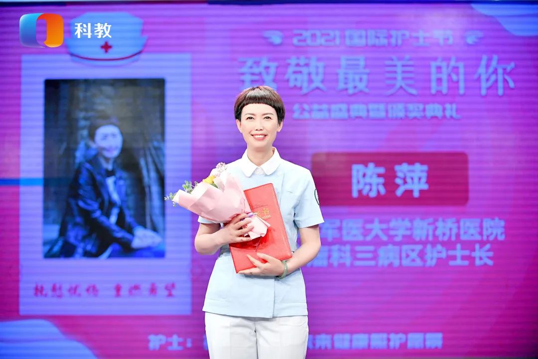 新桥医院肿瘤科陈萍护士长、神经外科李育祝护士参加重庆广播电视集团(总台)科教频道的《不健不散》现场颁奖的直播活动。