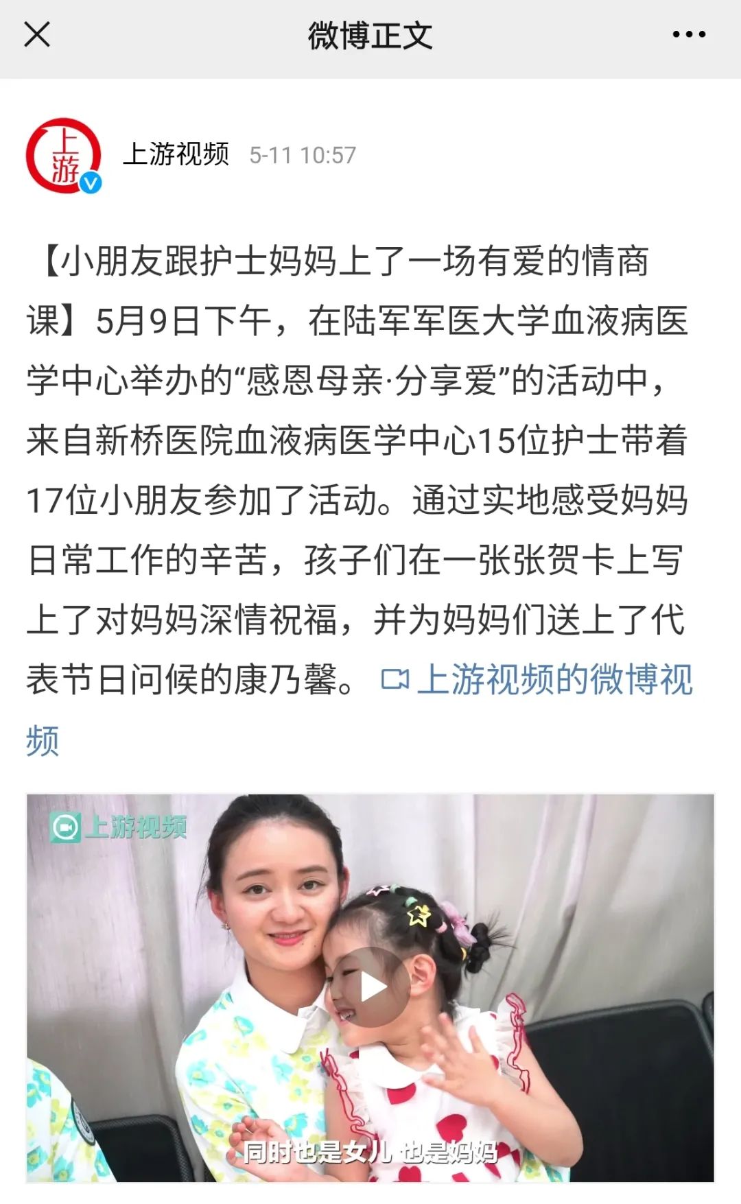 各媒体关于新桥医院血液科“感恩母亲·分享爱”活动的反响。