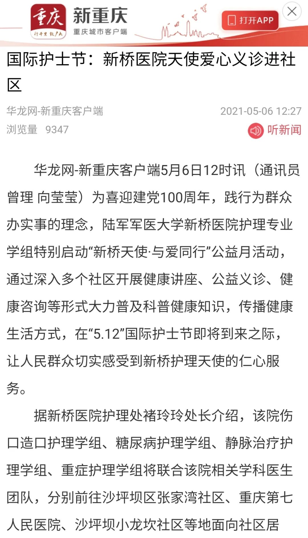 新桥护士节 · 媒体反响强