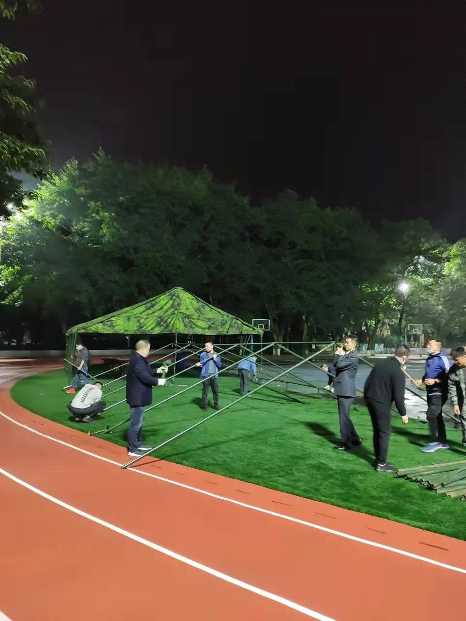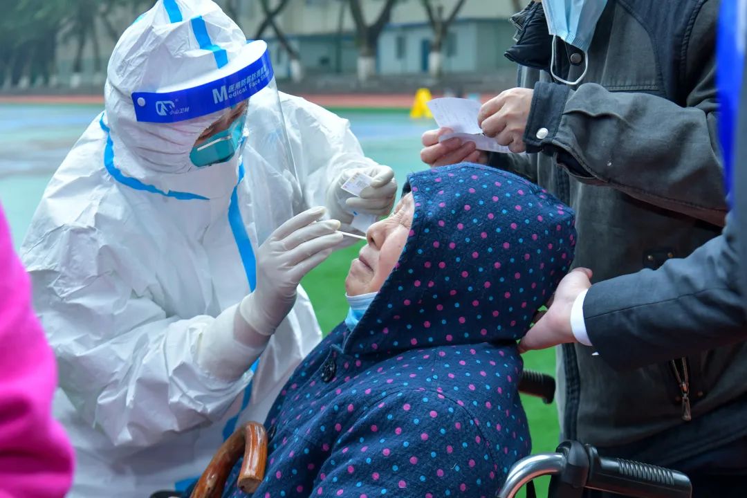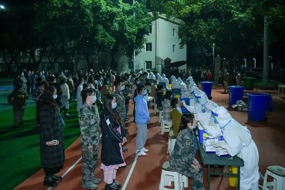 ▲医护人员正在为大家进行鼻拭子取样 此次核酸采集工作中 还有去年参加过 武汉抗疫的医疗队员的身影 老队员的加入为采样工作提供了“硬核”助力 夜色中 数千名市民自觉排队等候核酸采样 即采即走,迅速有序 ▲有序排队等待检测 疫情防控的有序进行 离不开所有人的通力协作 选场地、抬配件、搭架子 大家分工明确,热火朝天 院务处搭建的“暖心帐篷” 凝聚着大家抗击疫情的信心和决心