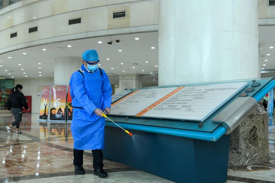 消杀人员背着沉甸甸的喷雾器 穿着厚厚的防护服 开展消杀工作 确保没有死角,阻断病毒传播途径
