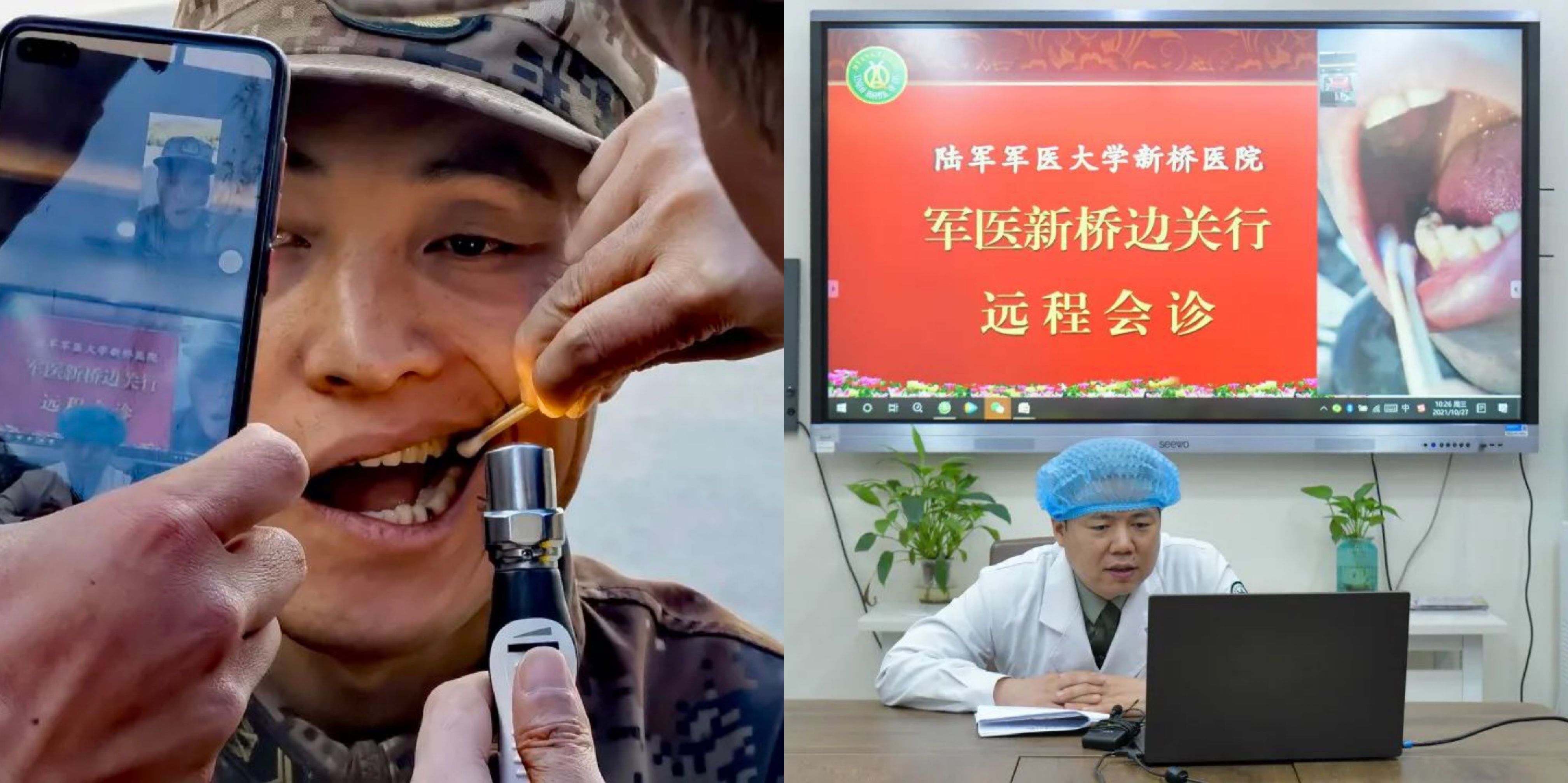 新桥医院医务处陈浩副处长介绍,在巡诊中了解到边防基层缺乏口腔健康保障能力,但基层官兵对该项健康服务又十分迫切,所以,专门依托“军医新桥”平台开启远程会诊,邀请到口腔颌面外科副主任汪昆副教授为20余位有需要的官兵进行了远程会诊,为大家进行了口腔疾病的诊断,给予了治疗意见,并给了口腔健康指导。