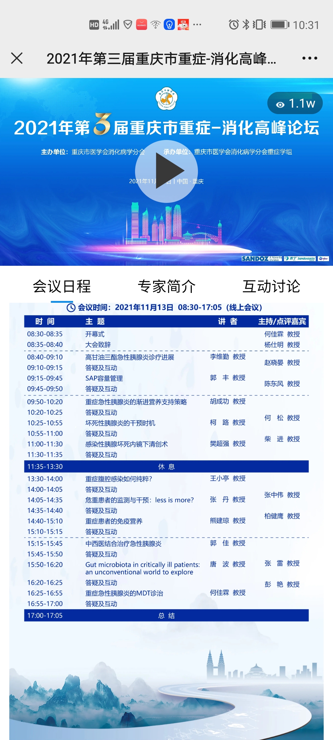 疫情必将被战胜,寒冬阻挡不了消化和重症人学习交流的热情。近日,重庆市医学会消化病学分会主办,重庆市医学会消化病学分会重症学组、陆军军医大学新桥医院消化内科承办的《2021第三届重庆市重症-消化高峰论坛》隆重举行。会议以“线上”的形式开展,邀请到国内著名重症医学领域专家,聚焦重症急性胰腺炎、重症腹腔感染、感染性胰腺坏死的内镜诊治、危重患者的免疫营养、中西医结合治疗急性胰腺炎、肠道菌群等消化重症最新前沿进展进行深入交流,线上参会人次突破10000余人。在专家们精彩的演讲中,互动答疑环节非常活跃,与重症医学的各位专家增进交流、开拓视野、收获友谊,会议取得圆满成功!