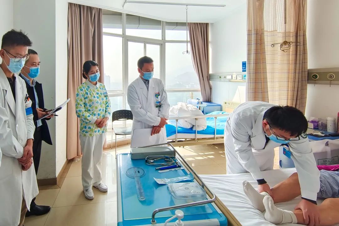 按照重庆市卫健委2021年度住院医师规范化培训督导评估检查总体部署安排,12月2日,重庆医科大学附属第二医院研究生处杜之渝处长一行5人对陆军军医大学新桥医院进行了督导评估。医院领导、专业基地主任、教学主任、教学秘书等共计50余人参加了见面会及反馈会。  见面会上,陆军军医大学新桥医院宋彩萍副院长介绍了医院住培教学组织管理及经验做法。之后,管理组专家通过查阅管理资料、实地考察教学条件、访谈教员和学员等形式了解了医院住培教学管理运行情况。专业组专家对妇产科、骨科、急诊科3个基地教学查房、学员病历和学员操作带教进行考核,详细查阅了专业基地教学档案资料。