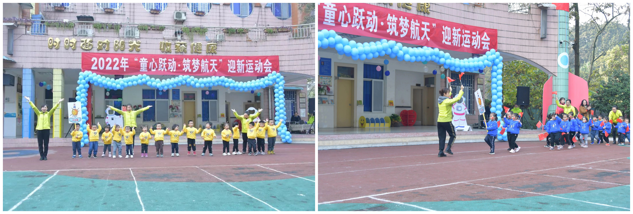 迎新运动会 12月22日 新桥医院幼儿园开展了 2022年“童心跃动·筑梦航天”迎新运动会 以游戏的形式,带领孩子了解航天事业 了解国家的科技发展 丰富幼儿园文化生活 增强孩子们的创新意识和想象力  运动会入场