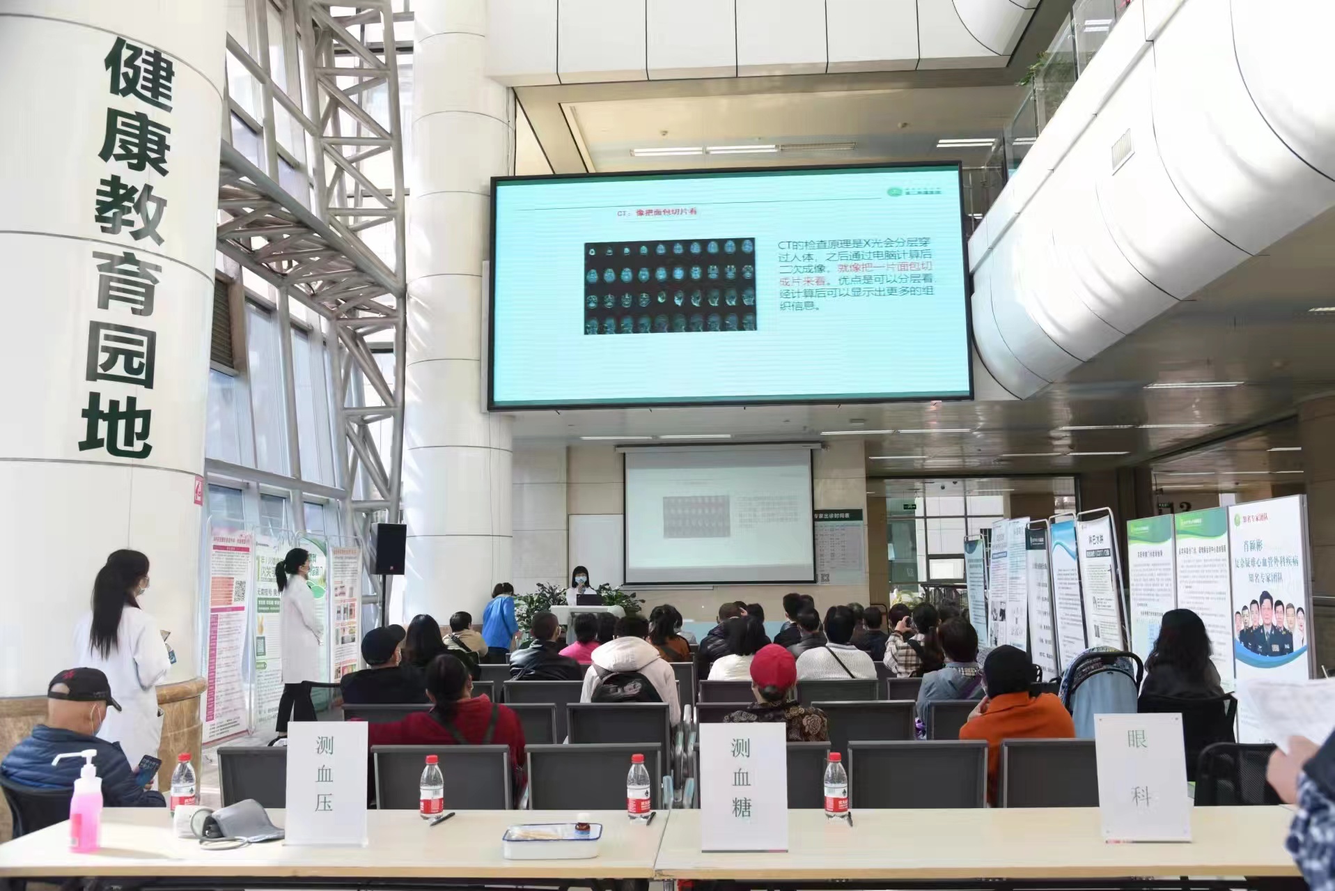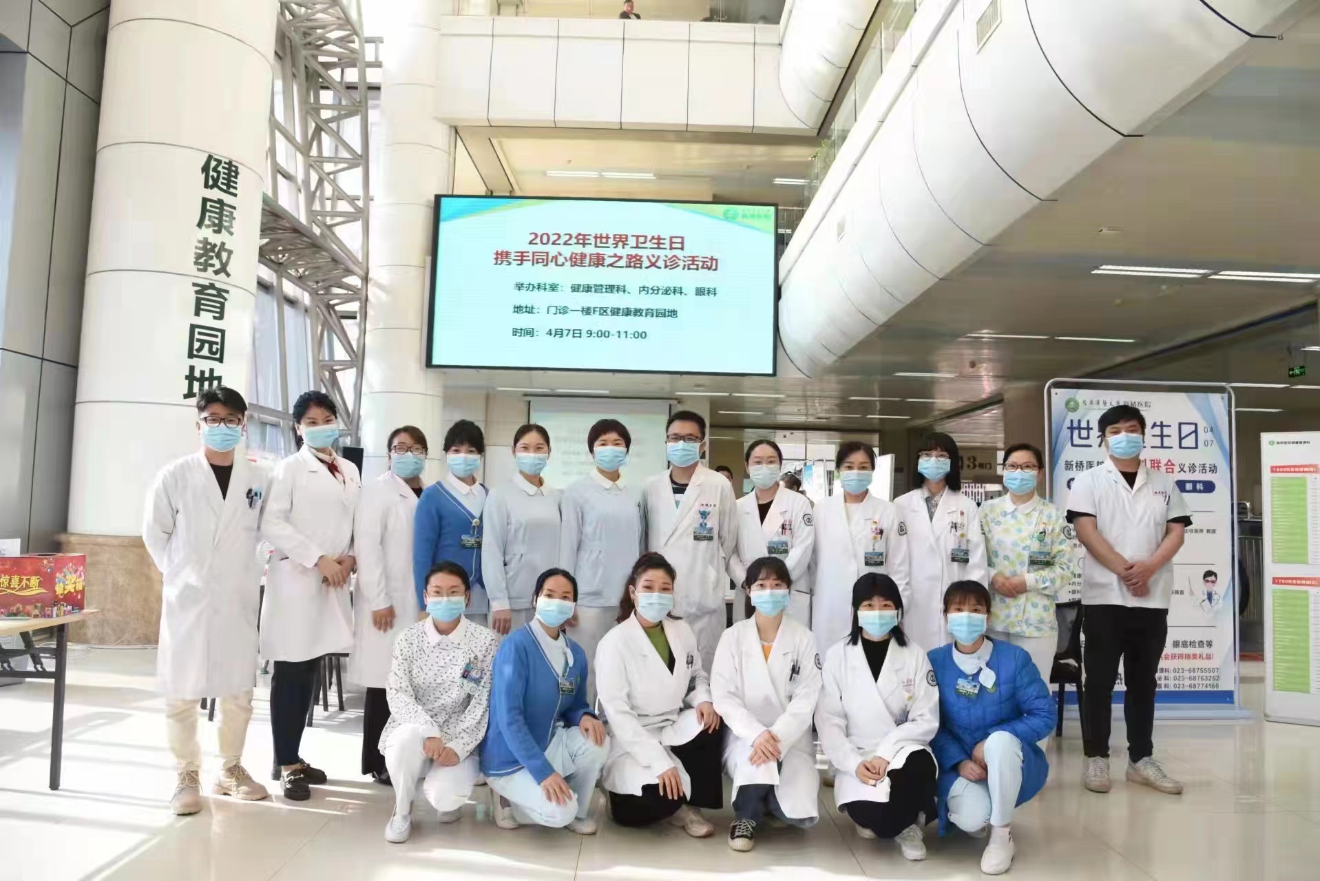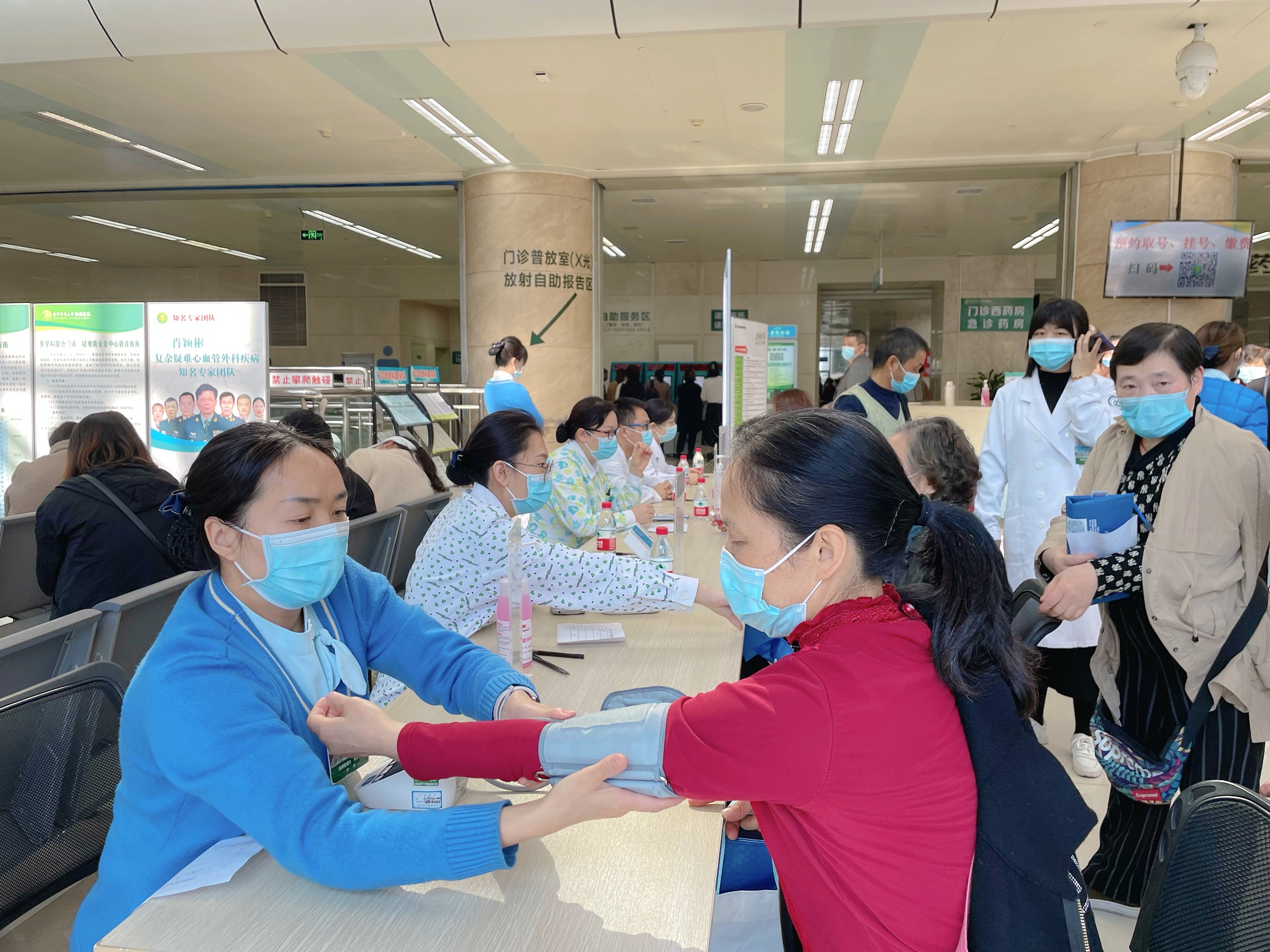 4月7日上午,陆军军医大学新桥医院健康管理科携手眼科及内分泌科在新桥医院门诊部1楼健康教育园地开展公益讲座、义诊系列活动。免费为广大市民朋友测血糖、血压、眼压、视力等检查。同时为市民进行“如何防治糖尿病?”“如何防治糖尿病视网膜病变、近视眼、青光眼、白内障等常见眼病?”“为什么要定期体检?”“我们日常饮食、作息应注意什么?”等科普教育,为现场160余名患者带来了一场实用、精彩的多学科联合大型义诊活动。