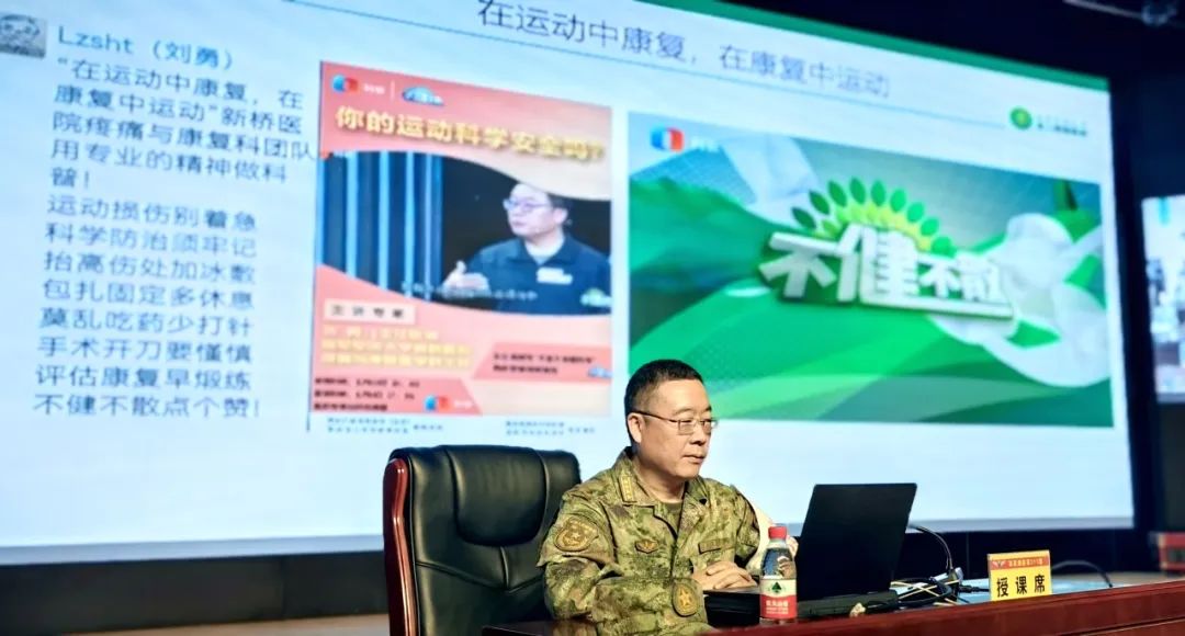专家们还利用晚上休息时间给官兵们做了健康科普讲座。疼痛康复医学科主任刘勇教授为大家讲授了《运动损伤的防治与康复》,通过大量基层一线调研的案例和数据,为大家科学训练、预防受伤、积极康复等给予了全方位指导。