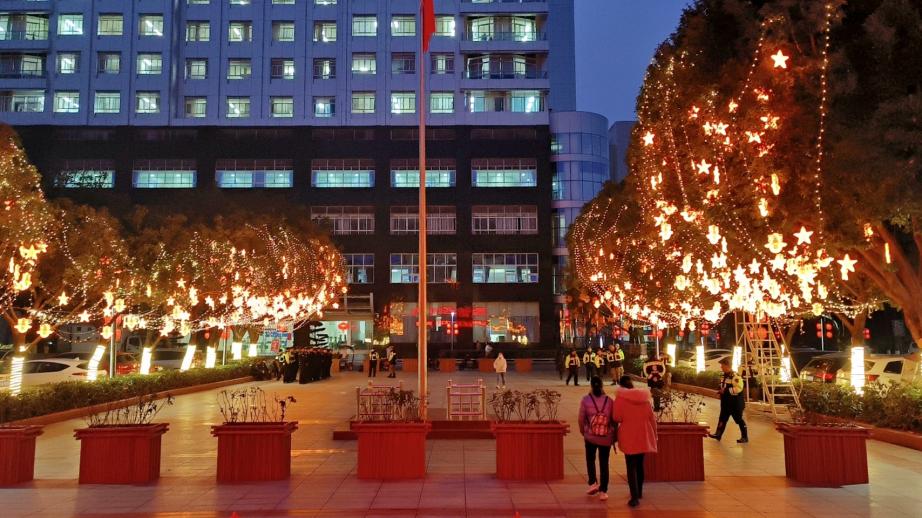 春节将至,在院党委的带领下,院务处近期开展“迎春环境美化亮化行动”。通过对全院乔木灌木进行修枝、绿化带养护补植、花池及摆台更换鲜花等营造洁净美丽的医院环境。通过在医院主干道及广场等人群集中地段安装灯带、灯笼、烟花灯等造型独特、色彩迥异的节日灯饰,打造出流光溢彩的视觉盛宴。璀璨夺目的迎春灯饰与光鲜亮丽的绿化环境交相辉映,多角度呈现出喜庆祥和的节日氛围,也承载着就诊患者与广大教职员工对新年的美好希冀。