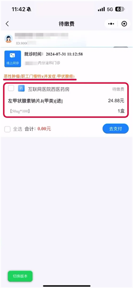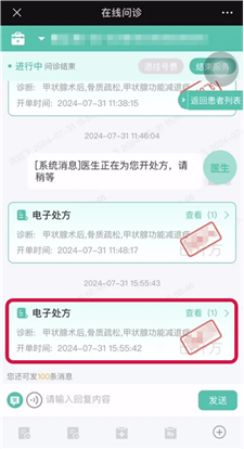 ①医生开具处方后,您将收到一条处方的待缴费单据。